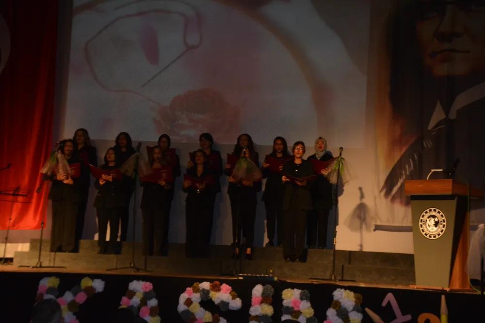 Kutlamaların ikinci bölümü saat 10.00’da Belediye Park İçi Kültür Salonu’nda gerçekleştirildi. Saygı duruşu ve İstiklal Marşı’nın ardından emekli öğretmen Nuriye Bulgurcu bir konuşma yaptı. Bulgurcu konuşmasında, öğretmenlik mesleğinin kutsallığına dikkat çekerek öğretmenlerin toplumun geleceğini şekillendirmedeki önemini vurguladı.
