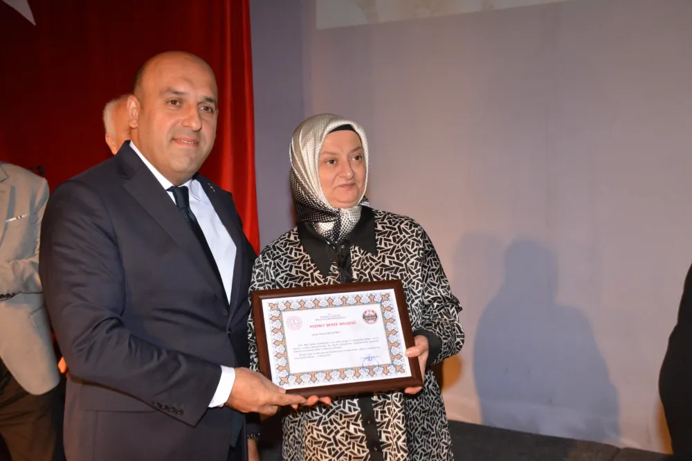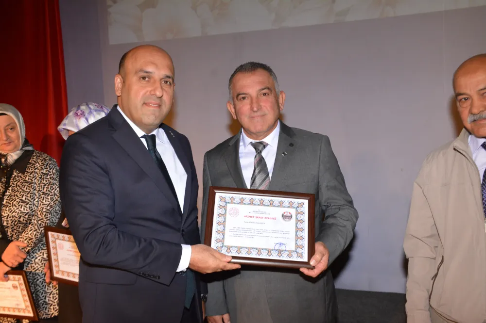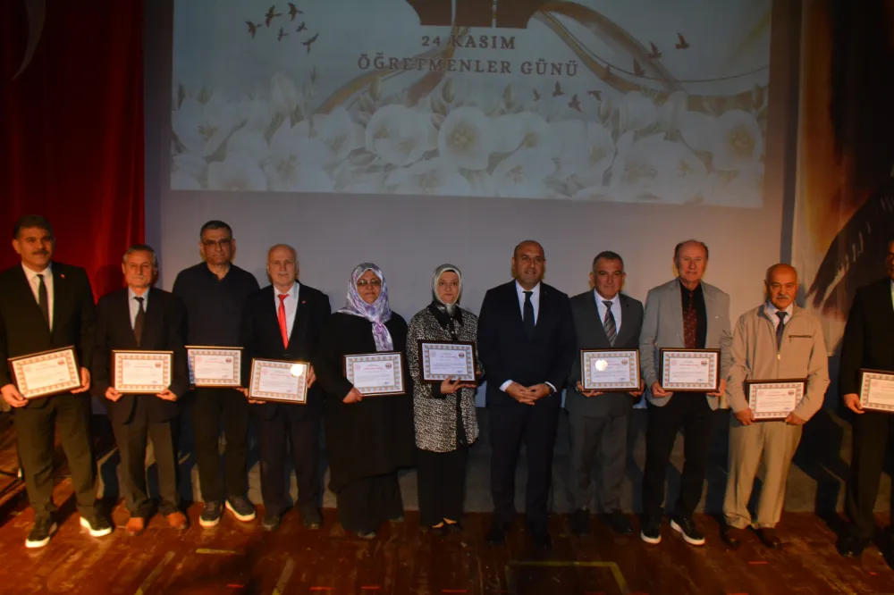 Törende emekli öğretmenlere Hizmet Şeref Belgeleri takdim edildi. Öğretmenler Günü dolayısıyla düzenlenen yarışmalarda dereceye giren öğretmenlere ise ödülleri verildi. Anı yarışması birincisi olan öğretmen, eserini sahnede okuyarak salonda duygusal anlar yaşattı.
