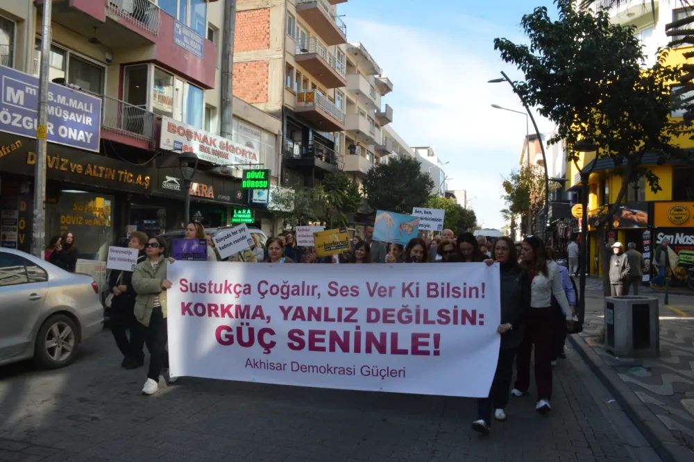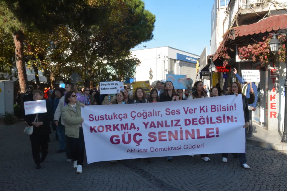 Cumhuriyet Halk Partisi Akhisar İlçe Başkanlığı ve Akhisar Demokrasi Güçleri iş birliğiyle, 25 Kasım Kadına Yönelik Şiddete Karşı Uluslararası Mücadele Günü kapsamında saat 12.00’de Tahir Ün Caddesi’nden başlayarak Uğur Mumcu Kültür Merkezi önüne kadar yürüyüş gerçekleştirdi. Yapılan yürüyüşün ardından grup, Uğur Mumcu Kültür Merkezi önünde basın açıklaması yaptı. Açıklamada, kadına yönelik şiddetin her türüne karşı ortak mücadele çağrısı yapılarak, şiddetin önlenmesi için toplumsal dayanışmanın ve etkin politikaların önemine vurgu yapıldı.