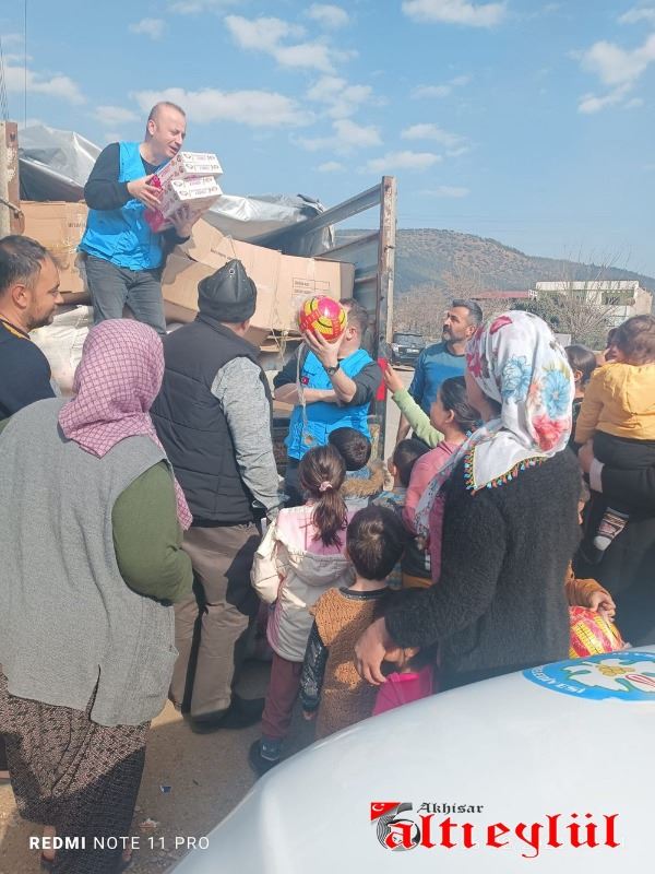 Tüm Türkiye’yi yasa boğan deprem felaketinin ardından yara sarma çalışmaları için bölgede çalışmalar yürüten Manisa Büyükşehir Belediyesi, Osmaniye’nin Bahçe ve Gaziantep'in Nurdağı ilçelerinin ardından depremin en çok etkilediği illerden bir tanesi olan Kahramanmaraş’ın merkez, Türkoğlu ve Afşin ilçelerinde çocuklara oyuncak, top, mont, bot ve kırtasiye seti armağan etti.