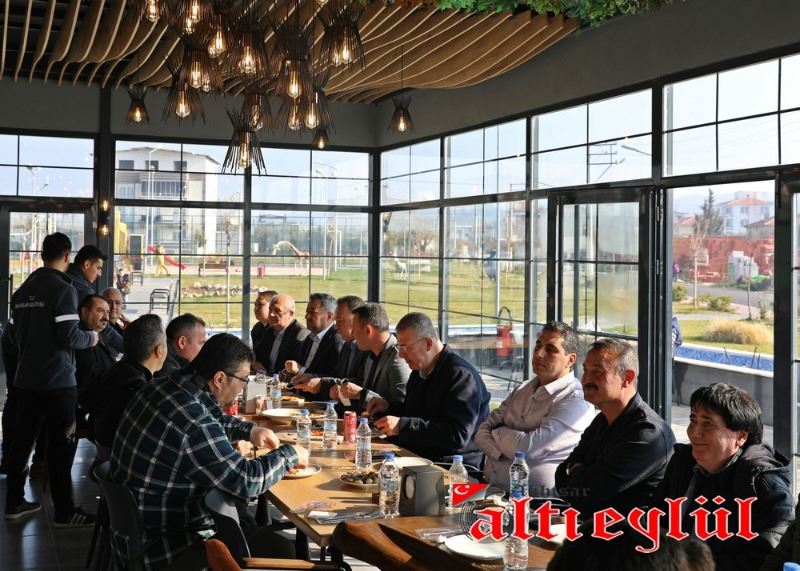 Başkan Besim Dutlulu’ya ziyaretinde Belediye Başkan Yardımcıları Ahmet Tınazlı, Bedri Türk, Ekrem Kayserili, Tuncay Engin ile kurum amirleri ve çalışanlar eşlik etti.