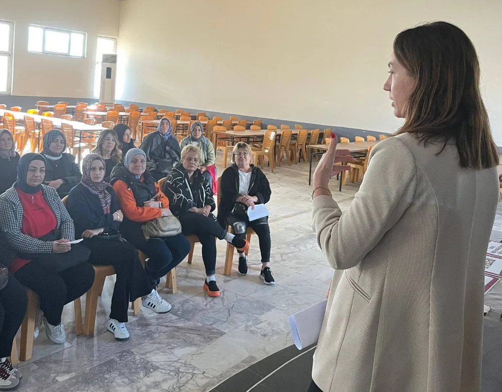 Efendi Mahallesi Çok Amaçlı Salonu’nda düzenlenen eğitimlerde, belediyenin sosyologları ve Manisa Barosu avukatı, kadınların sahip olduğu temel haklar ve şiddet türleri konusunda bilgilendirmelerde bulundu.