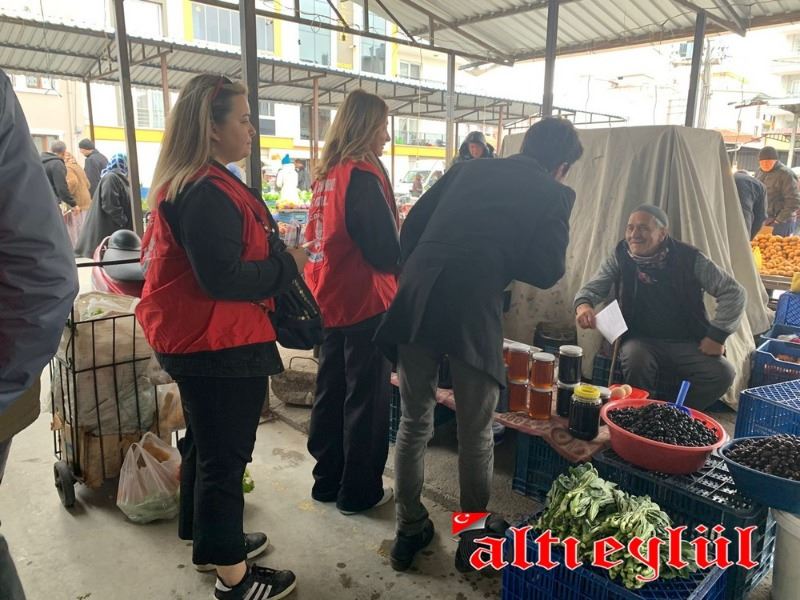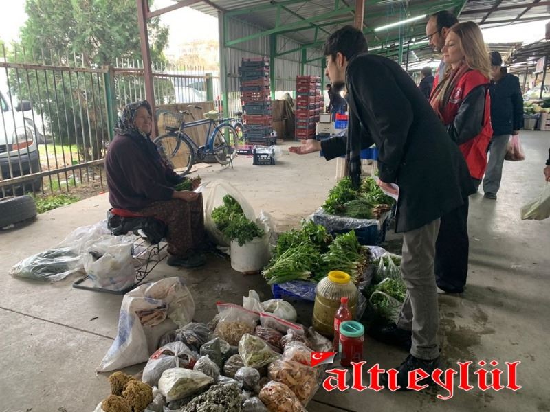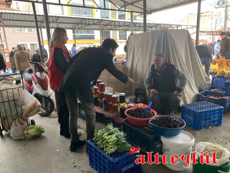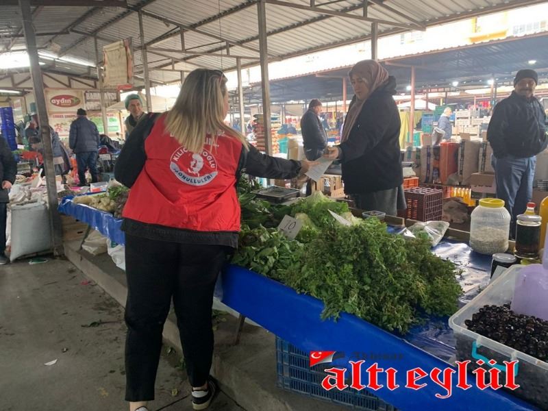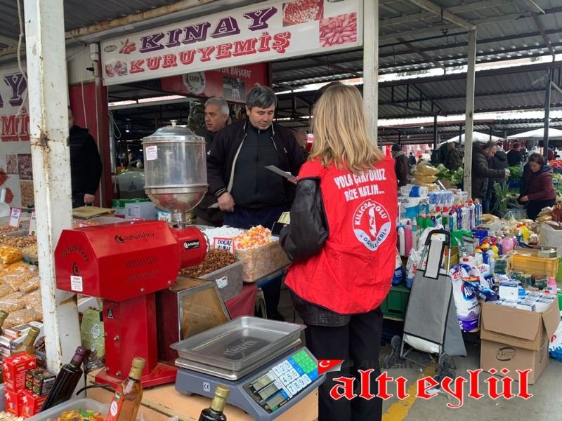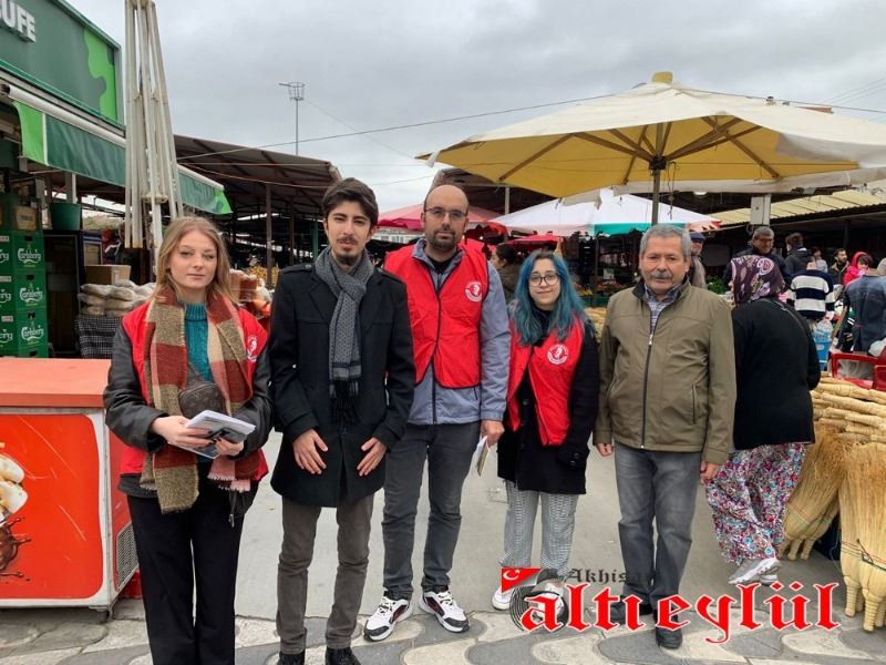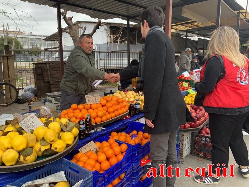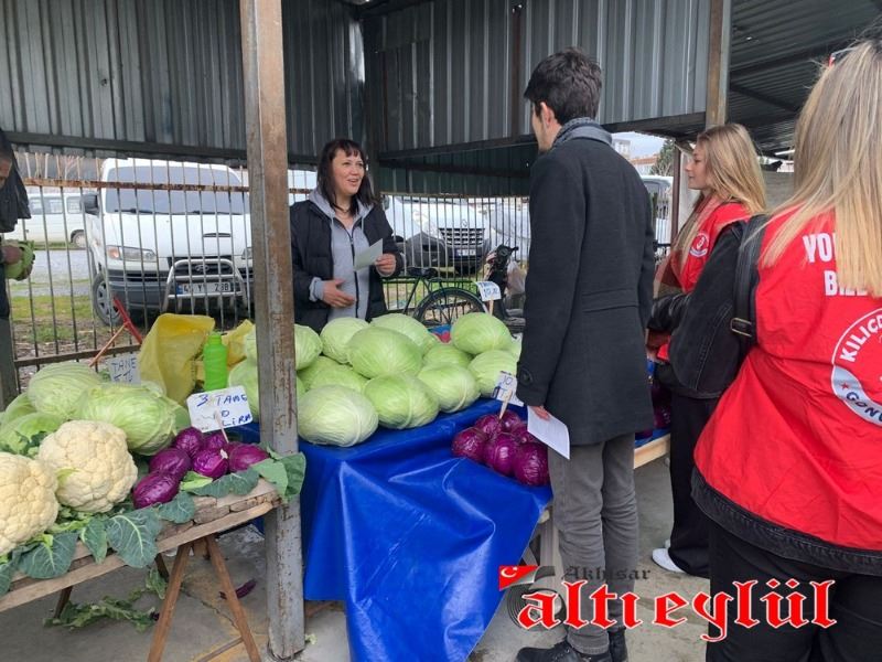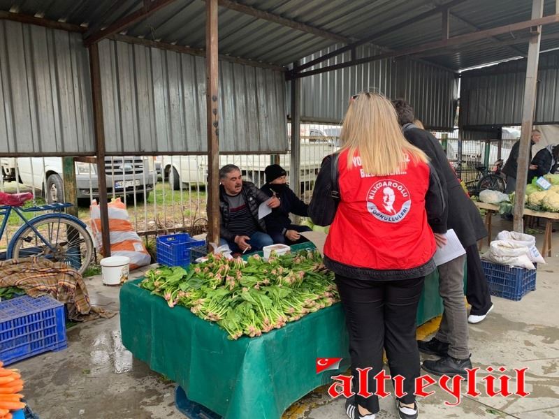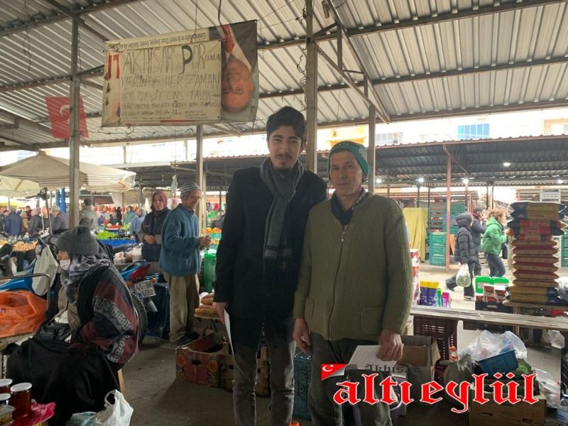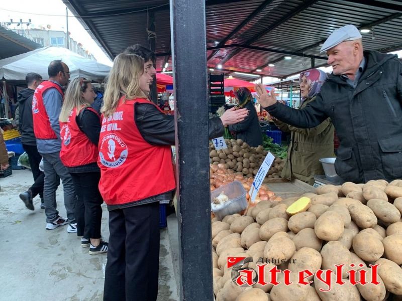 Akhisar Kılıçdaroğlu Gönüllüleri Koordinatörü Samet Erim Çam ve gönüllüler, tarım politikaları üzerine kitapçıklar düzenleyerek pazarcı esnafına dağıttı.
