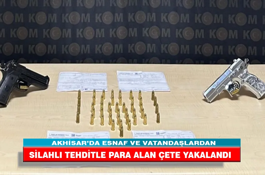 “Kaçakçılık ve Organize Suçlarla Mücadele Şube Müdürlüğümüz Akhisar KOM Büro Amirliğimizce; İlimiz Akhisar ilçesinde meydana gelen Nitelikli Yağma suçu ile ilgili yapılan çalışmalar sonucunda İlimiz Akhisar ilçesi ve İzmir ilinde belirlenen toplam 4 adreste 01.03.2024 günü İstihbarat Şube Müdürlüğümüz ile koordineli olarak operasyon gerçekleştirilmiş, esnaf ve vatandaşlarımızı tehdit etmek suretiyle para aldığı tespit edilen; A.Ö. (39), E.Ç. (33), K.A. (25) ve E.Y. (29) isimli 4 şahıs yakalanarak gözaltına alınmıştır.