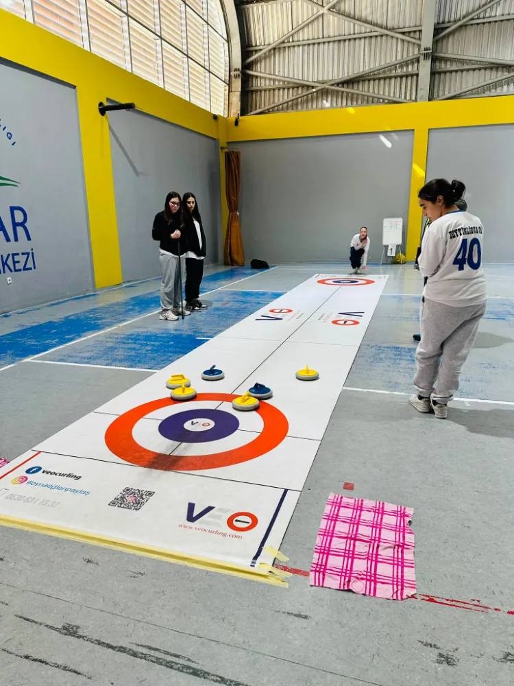 Floor Curling, buz hokeyi veya curlıng oyunlarına benzeyen ancak buz yerine düz bir zemin üzerinde oynanan bir spor dalıdır. Oyuncular, küçük bir disk ya da taşı hedefe doğru iterek yönünü kontrol etmeye çalışır. Bu yıl, Akhisar'da ilk kez düzenlenen Floor Curling turnuvası büyük ilgi gördü.