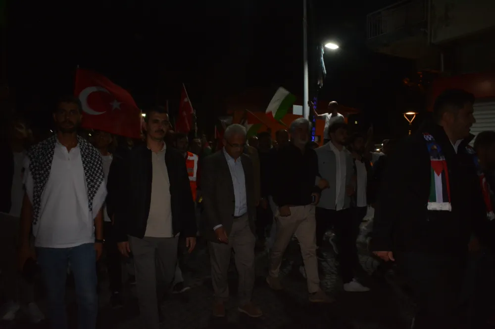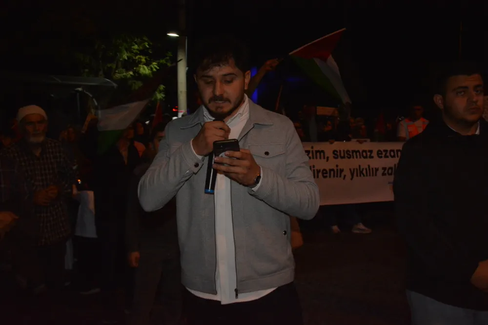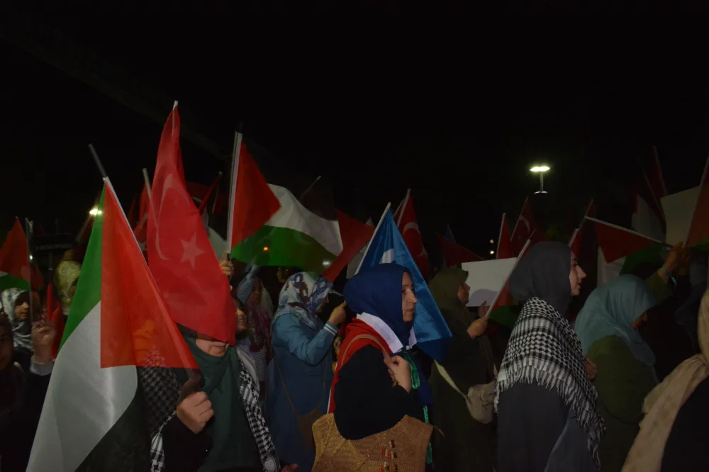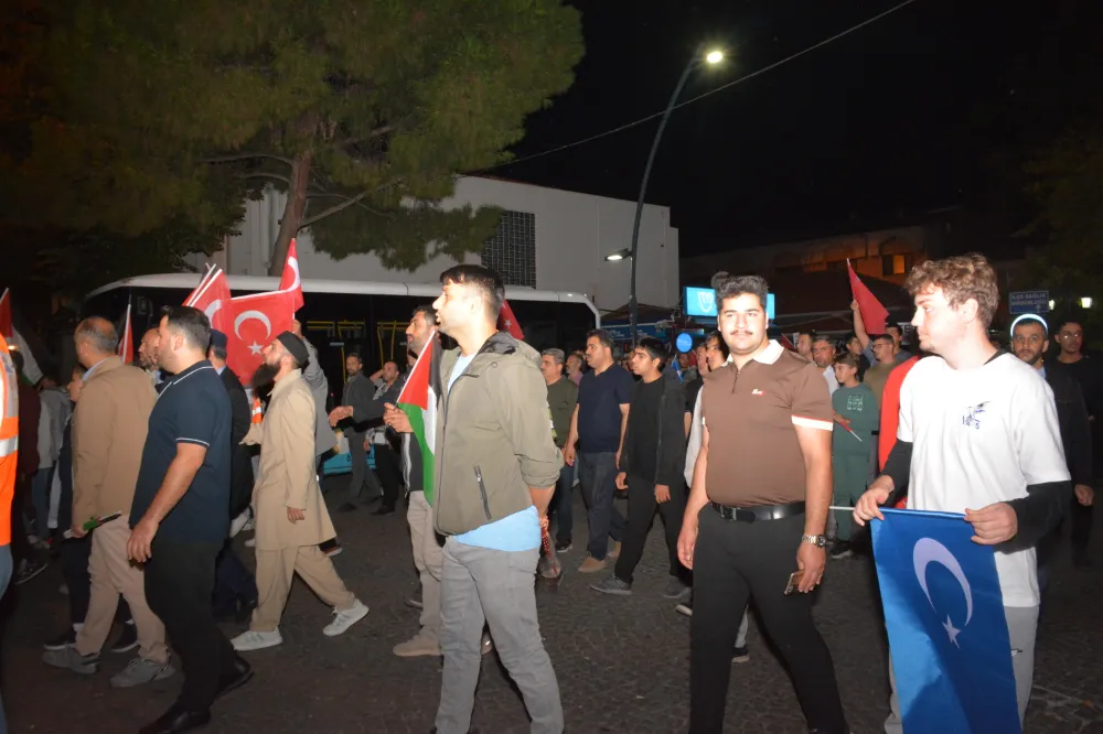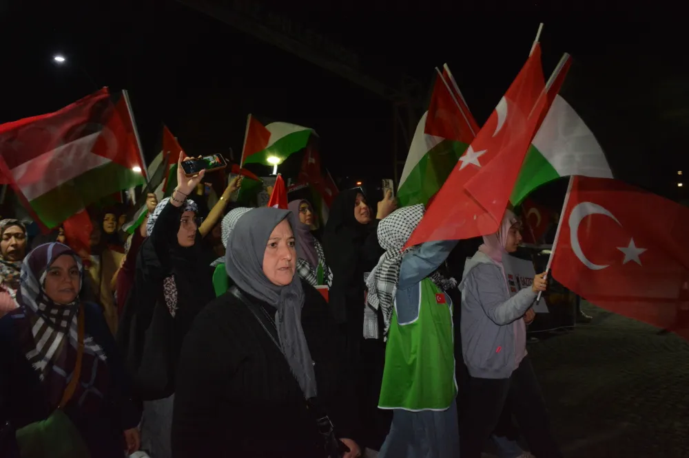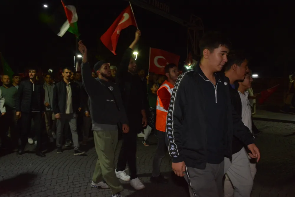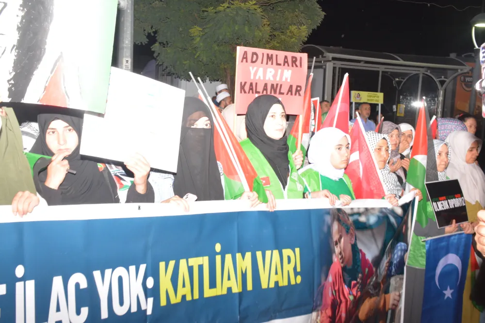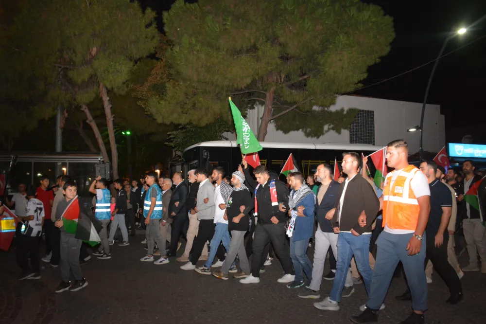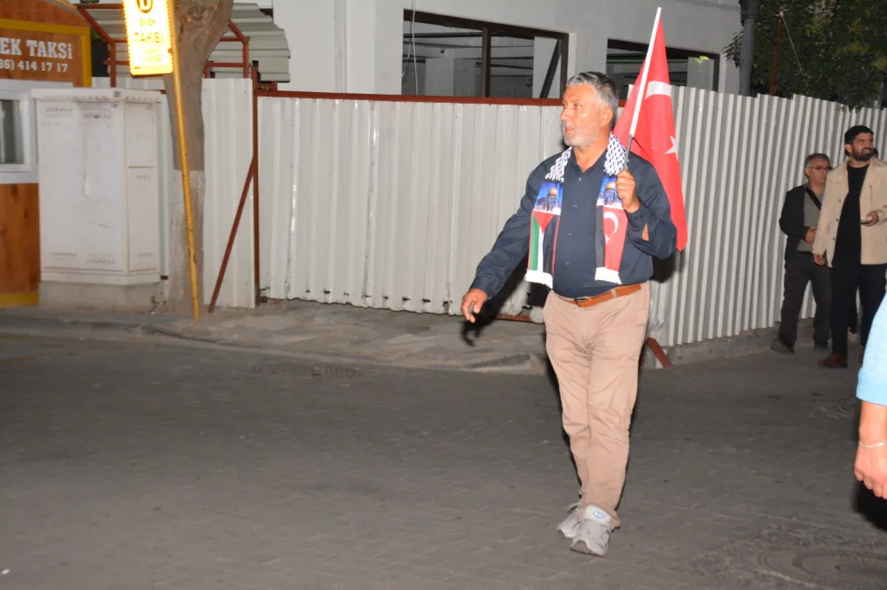 Yeni Cami önünden başlayan yürüyüşte, Gazze’ye insani yardım götürmek üzere yola çıkan Küresel Gazze Filosu’na uluslararası sularda İsrail tarafından yapılan saldırı protesto edildi. Yürüyüş boyunca tekbir s yükselirken, Gazze lehine ve İsrail aleyhine sloganlar atıldı.