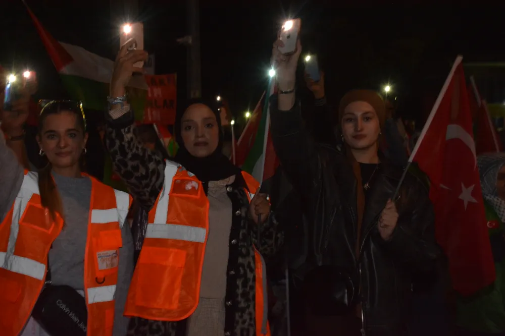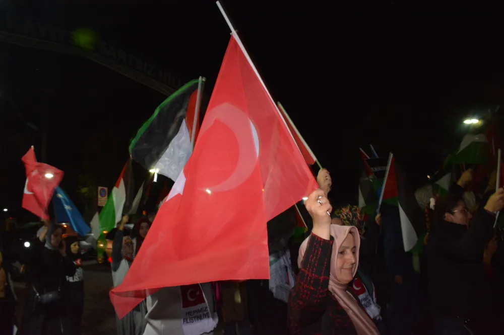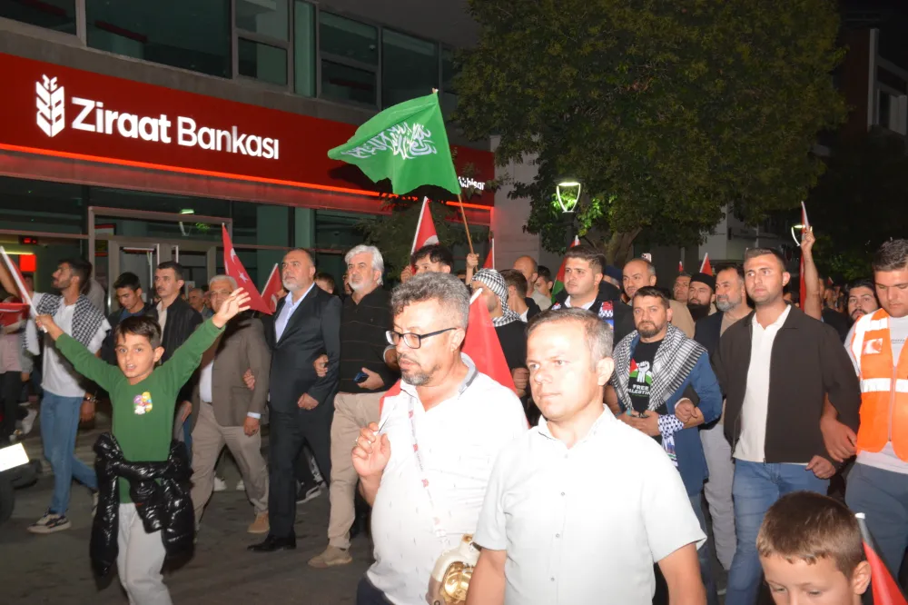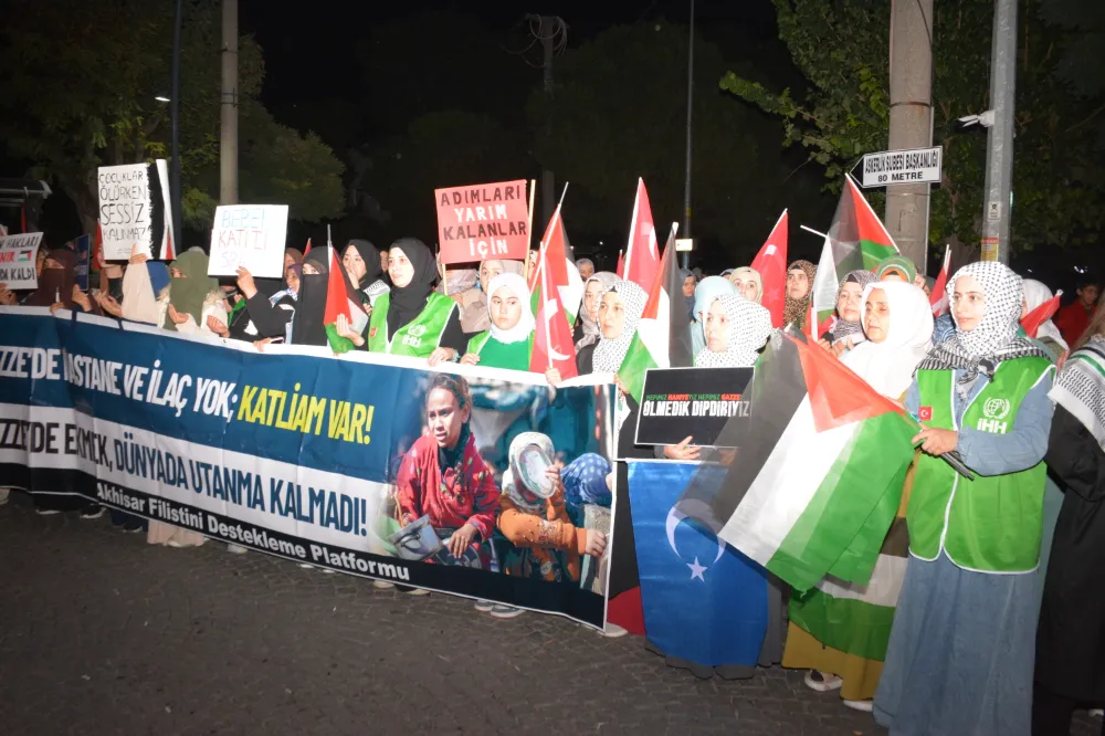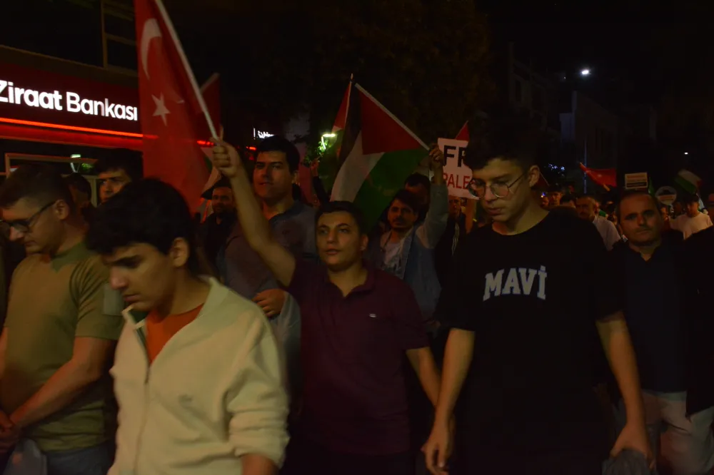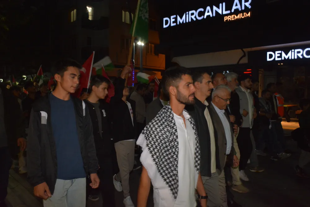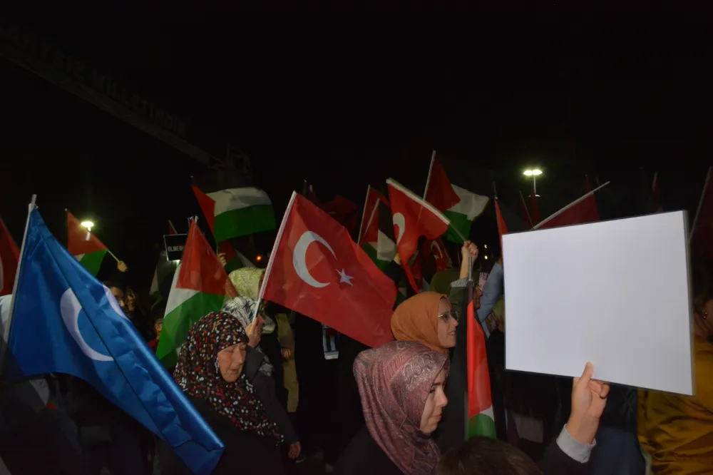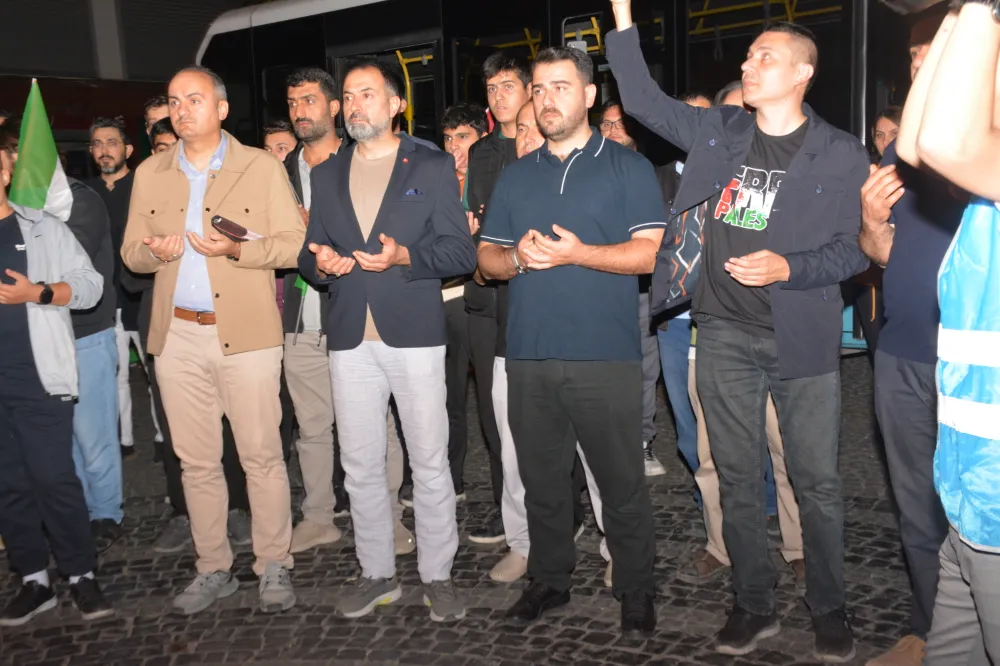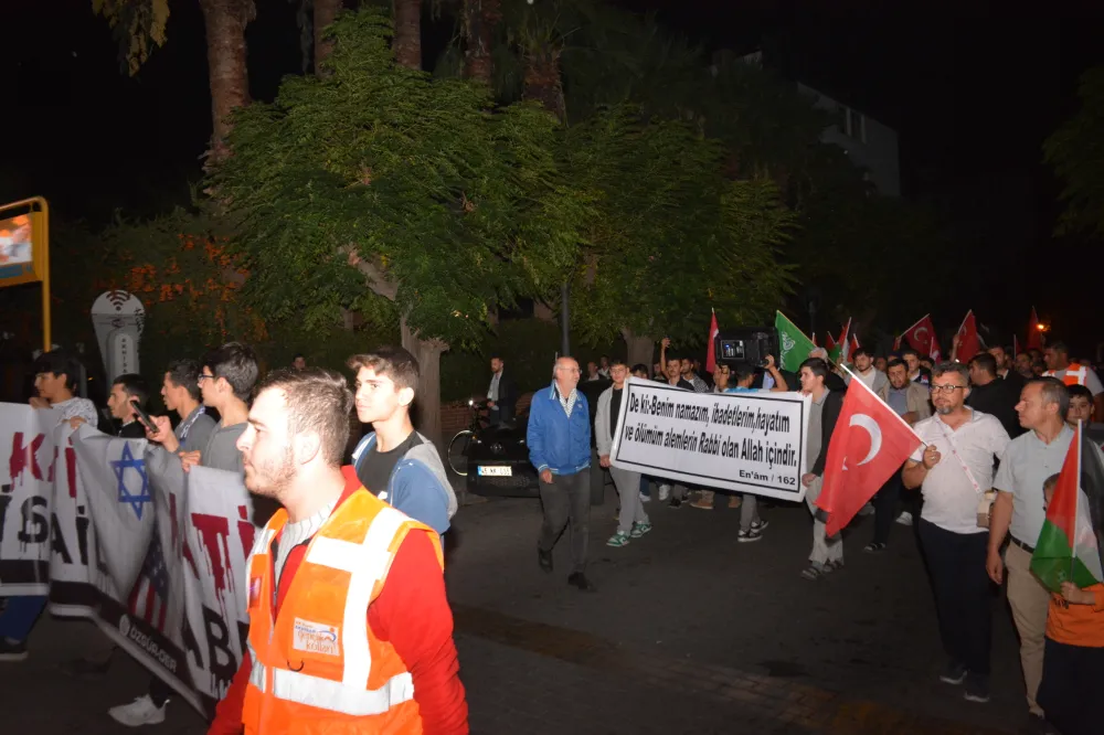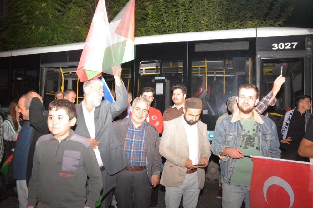 Yeni Cami önünden başlayan yürüyüşte, Gazze’ye insani yardım götürmek üzere yola çıkan Küresel Gazze Filosu’na uluslararası sularda İsrail tarafından yapılan saldırı protesto edildi. Yürüyüş boyunca tekbir s yükselirken, Gazze lehine ve İsrail aleyhine sloganlar atıldı.