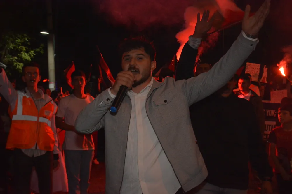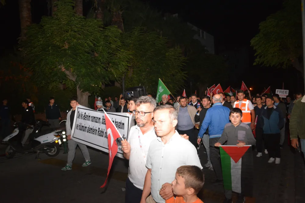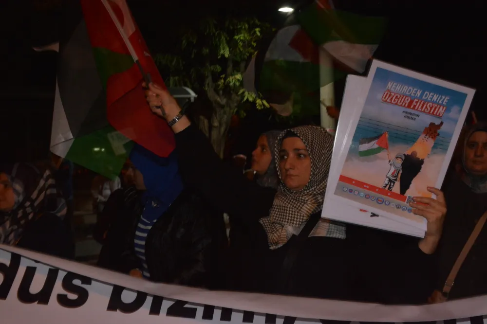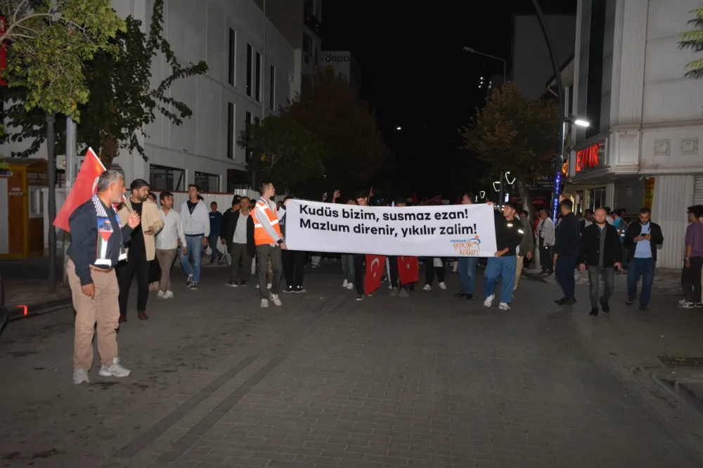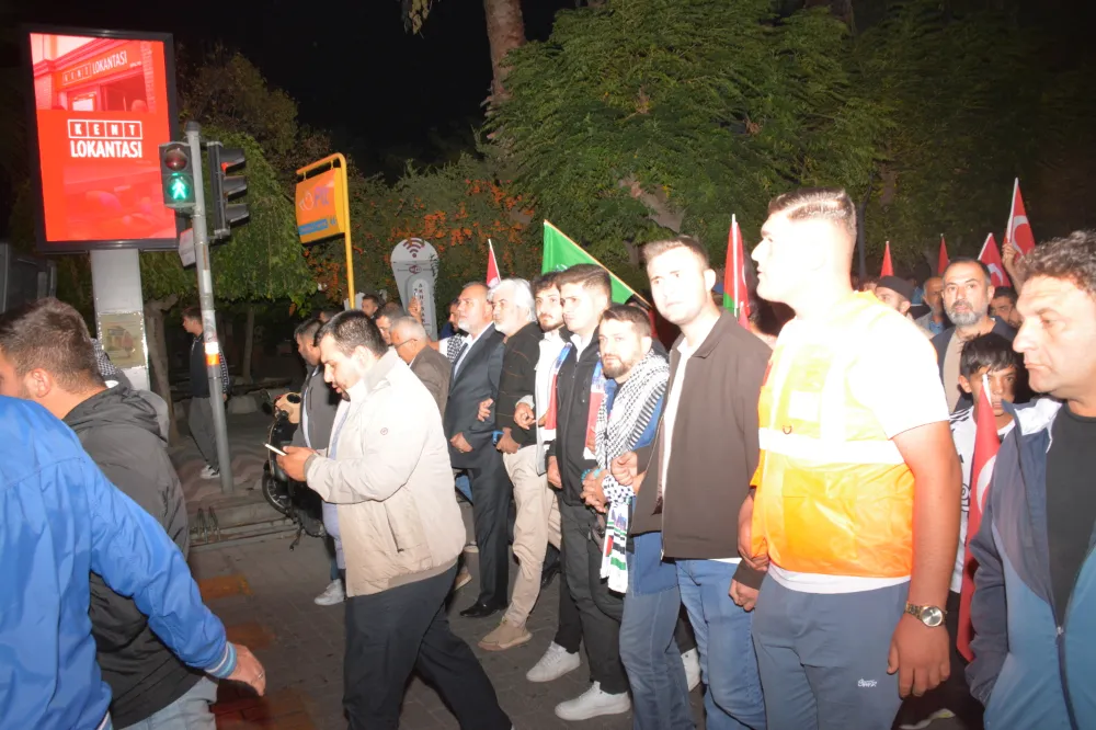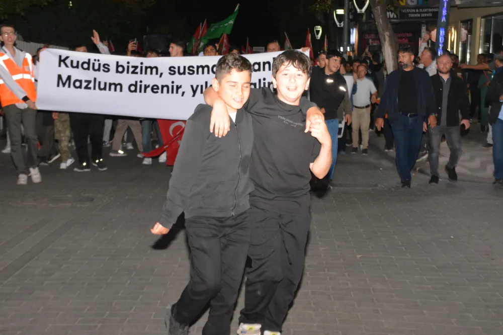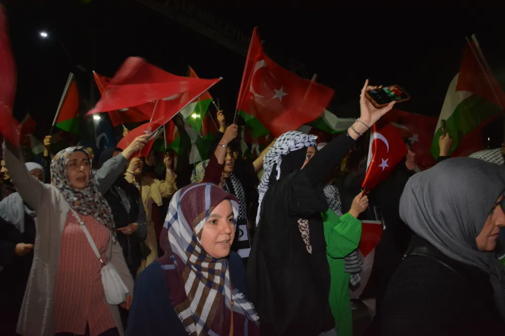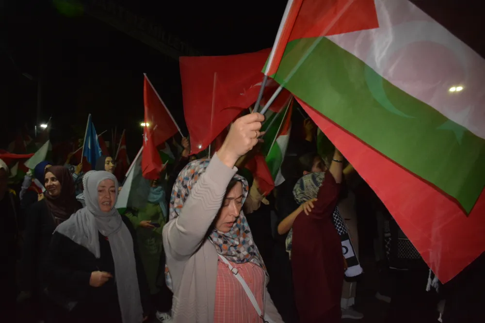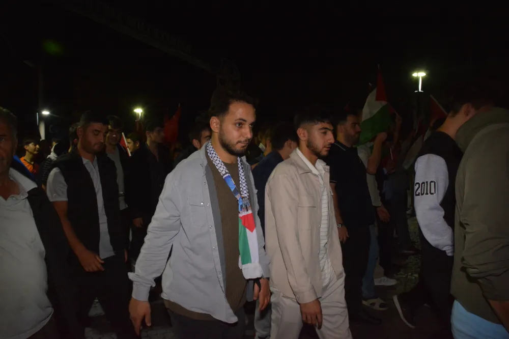 Yeni Cami önünden başlayan yürüyüşte, Gazze’ye insani yardım götürmek üzere yola çıkan Küresel Gazze Filosu’na uluslararası sularda İsrail tarafından yapılan saldırı protesto edildi. Yürüyüş boyunca tekbir s yükselirken, Gazze lehine ve İsrail aleyhine sloganlar atıldı.