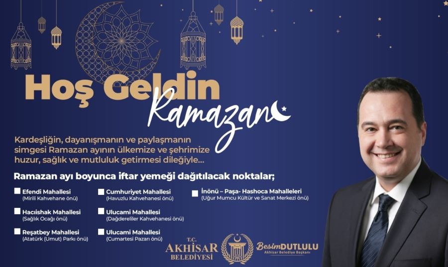 Bu yıl da ihtiyaç sahibi vatandaşların yanında olacaklarını ve iftar için sıcak yemek çıkaracaklarını belirten Başkan Dutlulu, “Ramazan dayanışmadır, paylaşmaktır. Hüsnü Kahraman Kültür Parkı Gölet alanında bulunan Akhisar Belediyesi Aşevimizde, hayırsever vatandaşlarımızın da desteğiyle her gün yüzlerce ihtiyaç sahibimizin sofrasına sıcak yemek ulaştırıyoruz. Bu ramazan ayında bağışlarınızla ihtiyaç sahibi ailelerimize destek olabilirsiniz. Bağış yapmak isteyen vatandaşlarımız 444 11 45 numaralı belediye hattımızdan Sosyal Yardım İşleri Müdürlüğümüze ulaşabilir ve detaylı bilgi alabilir. Tüm halkımıza Hayırlı Ramazanlar diliyorum.”