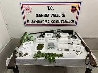 Aramalarda; 171 gram kubar esrar, 1 gram kokain, 3 ruhsatsız tabanca, 28 tabanca fişeği, 3 ruhsatsız av tüfeği, 25 gram kenevir tohumu, 3 kök kenevir, 10 uyuşturucu içme aparatı, 1 hassas terazi ve 8 adet sikke olduğu değerlendirilen objeler bulundu.