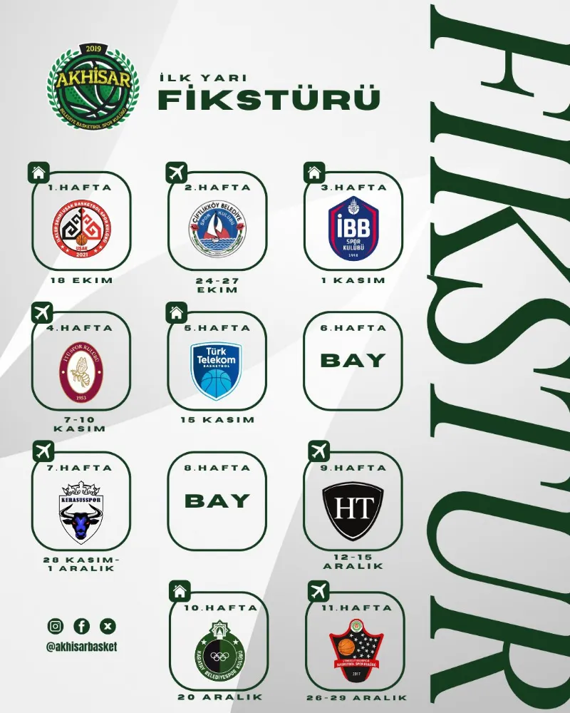 Temsilcimiz ilk maçını 18 Ekim 2025 Cumartesi günü Saat:18.00’da Akhisar Kapalı Spor Salonunda ilkler Şehri Uşak’a karşı oynayacak.