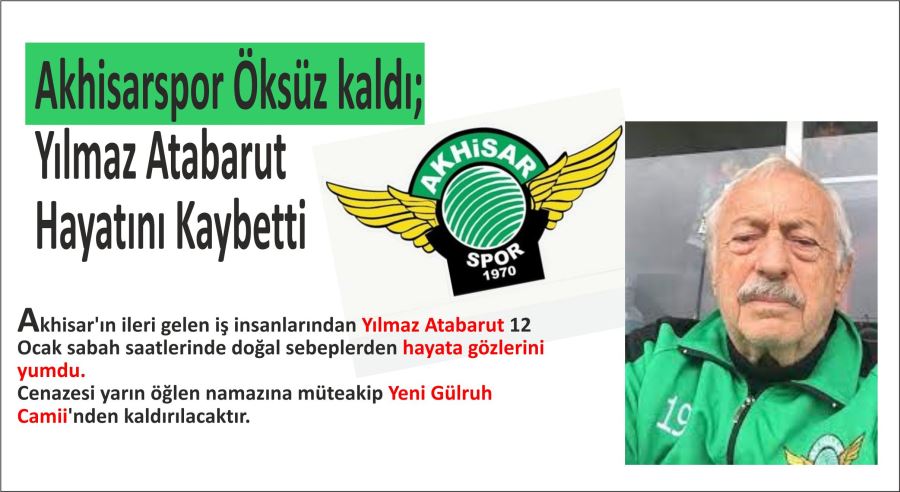Yılmaz Atabarut; Akhisarspor’un kurucu başkanı olup 1989 yılında Doğru Yol Partisi’nden Belediye Başkanlığına adaylığını koymuş, siyasi hayatta da çalışmaları bulunan bir iş insanıydı. Asıl mesleği mimarlık olan Atabarut, şehrimize çok sayıda eser kazandırdı. Bunların içerisinde Seksenevler ve Atabarut Çarşısı olarak bilinen Atabarut Pasajı gibi projeler üretti. Merhuma Allah’tan rahmet kederli ailesine baş sağlığı dileriz.