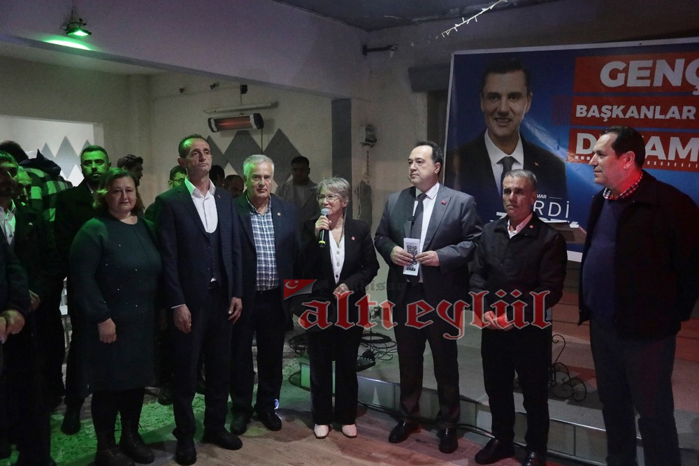 Sonrasında, havanın yağışlı olmasından dolayı Mecidiye düğün salonunda vatandaşlarla buluşan Başkan Besim Dutlulu, Manisa Milletvekili A.Vehbi Bakırlıoğlu ve İlçe Başkanı Hayriye Hacet, Cumhuriyet Halk Partisine yeni üye olan belde sakinlerine rozetlerini taktı.
