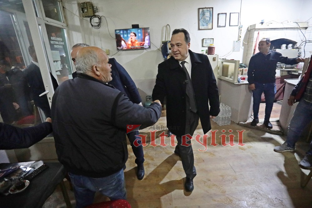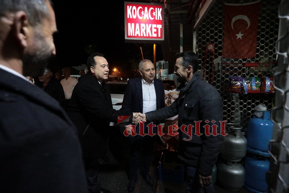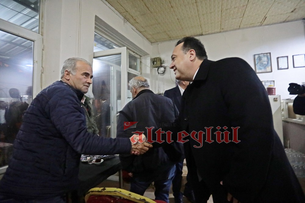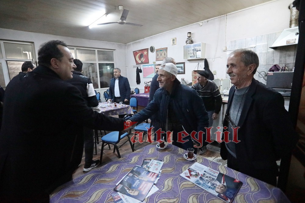 Beldeye girişte mahallenin gençleri tarafından havai fişek gösterileri ve meşaleler ile karşılanan Başkan Dutlulu burada önce kahvehaneleri ziyaret ederek vatandaşlar ile görüştü.