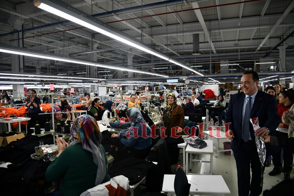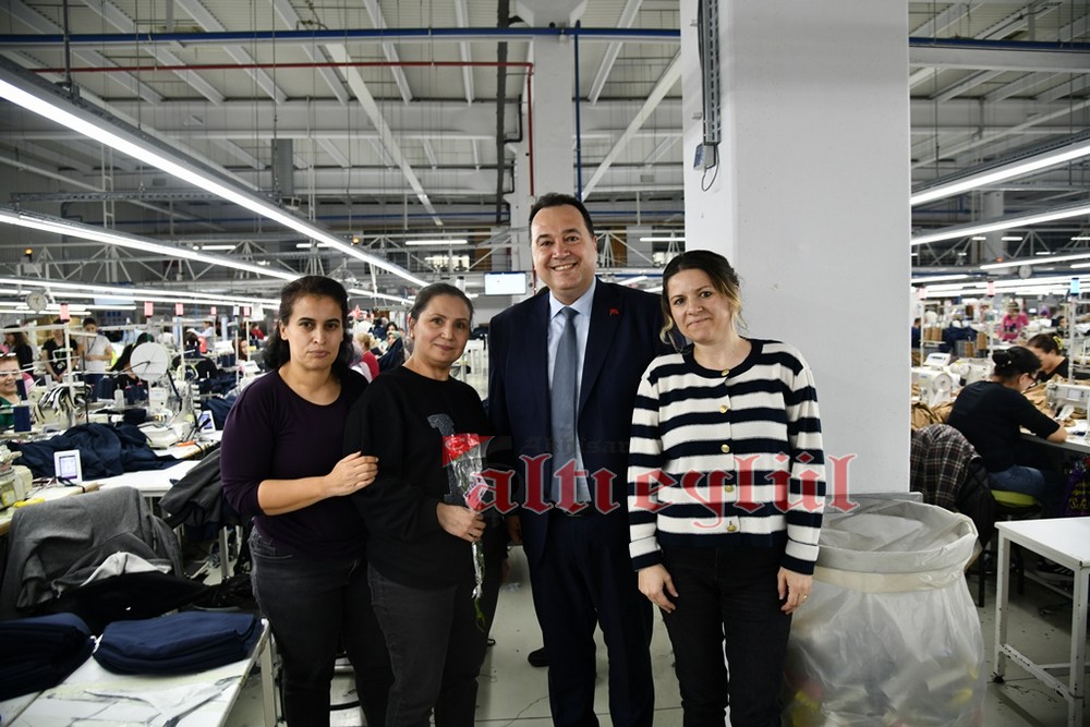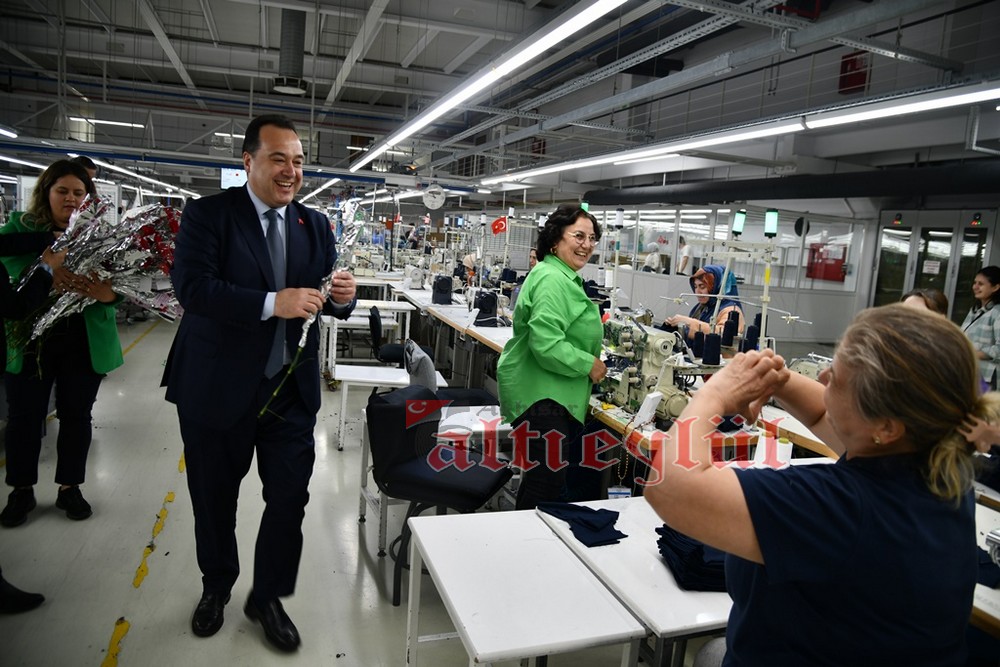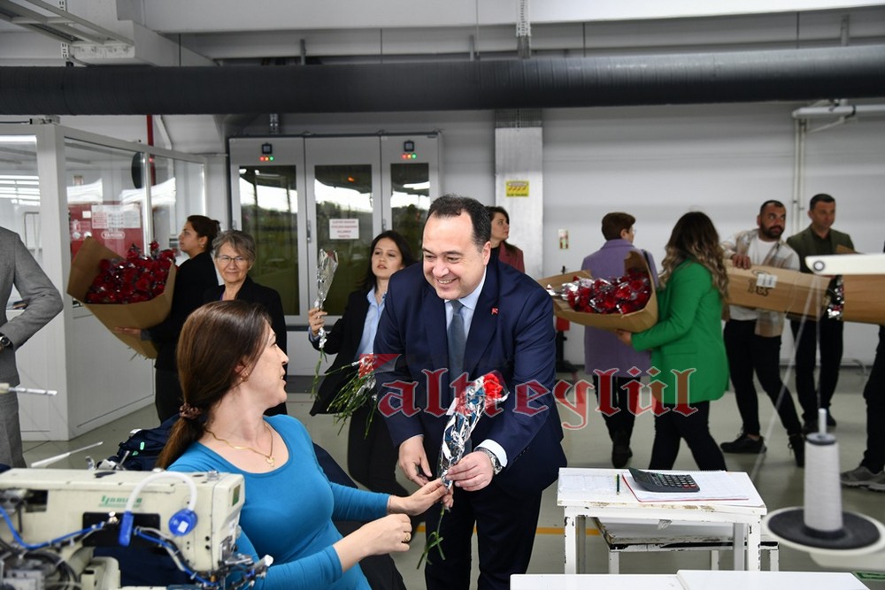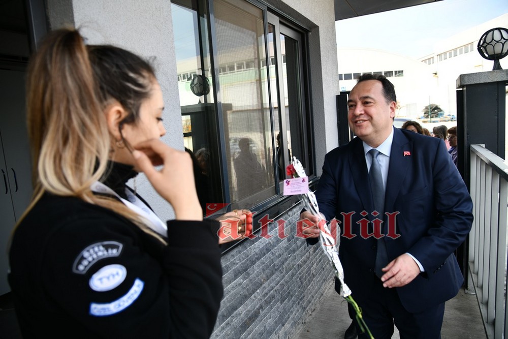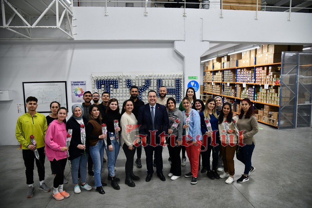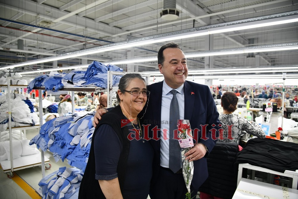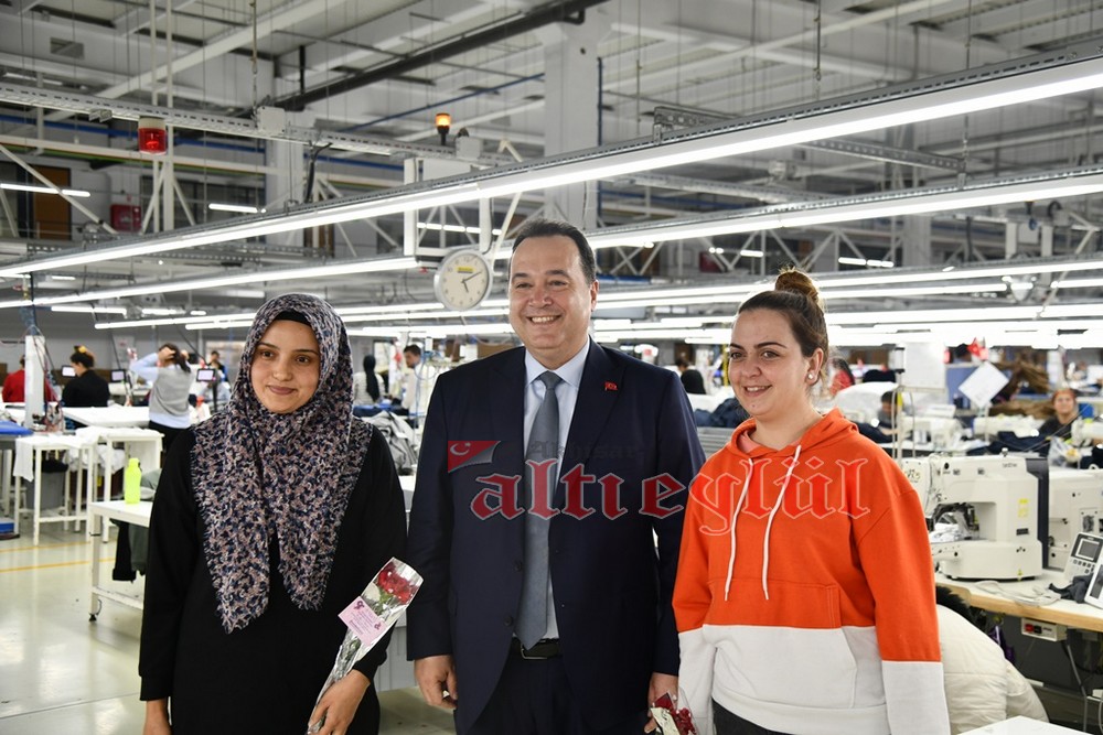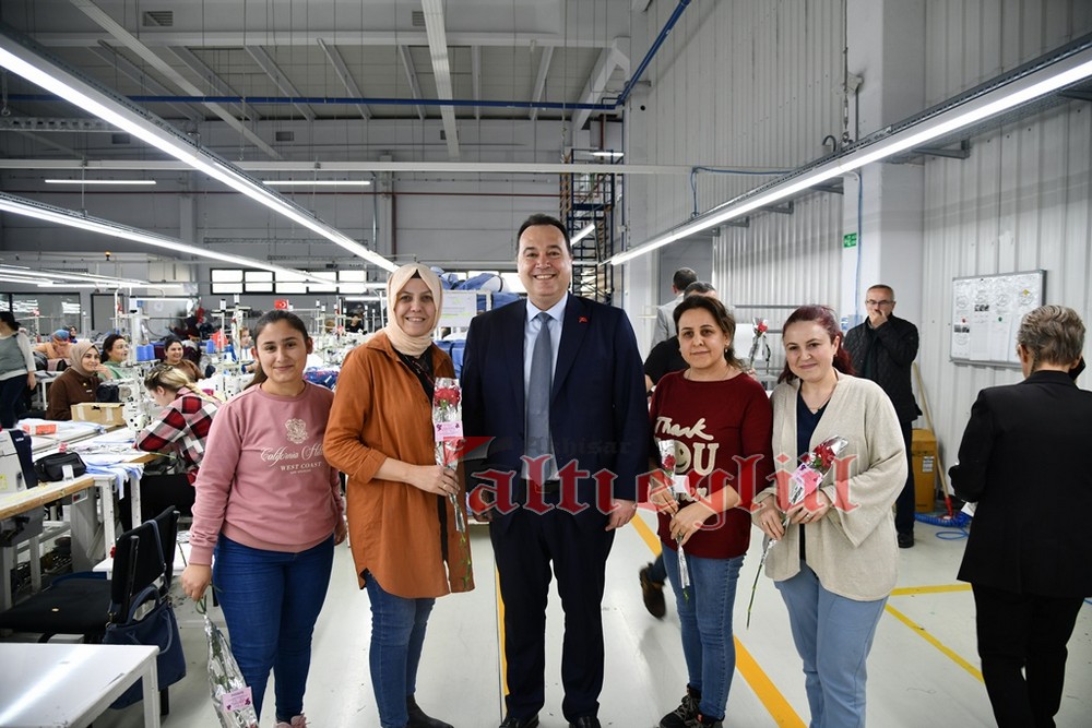 Akhisar Belediye Başkanı Besim Dutlulu, 8 Mart Dünya Emekçi Kadınlar Günü’nde ilçedeki fabrikalarda çalışan, esnaflık yapan kadınları ziyaret ederek karanfil hediye etti.