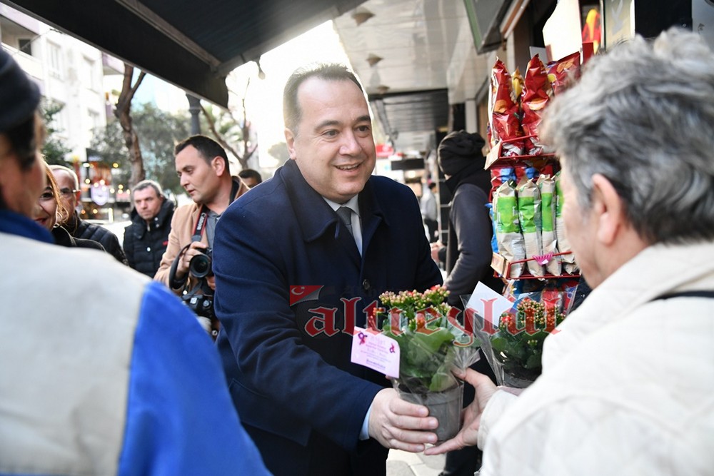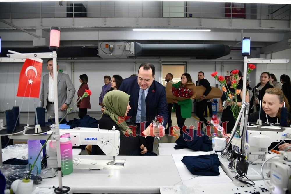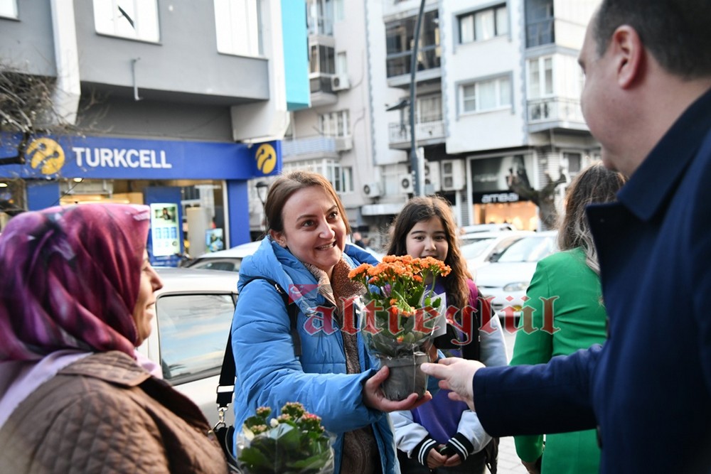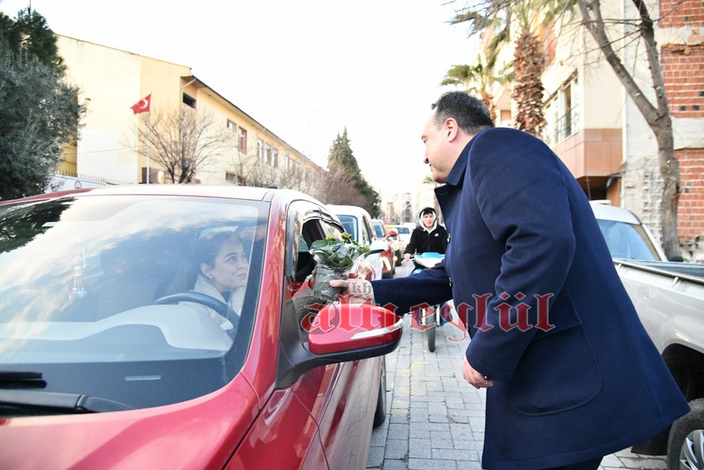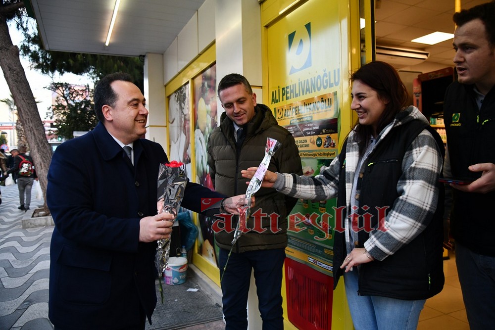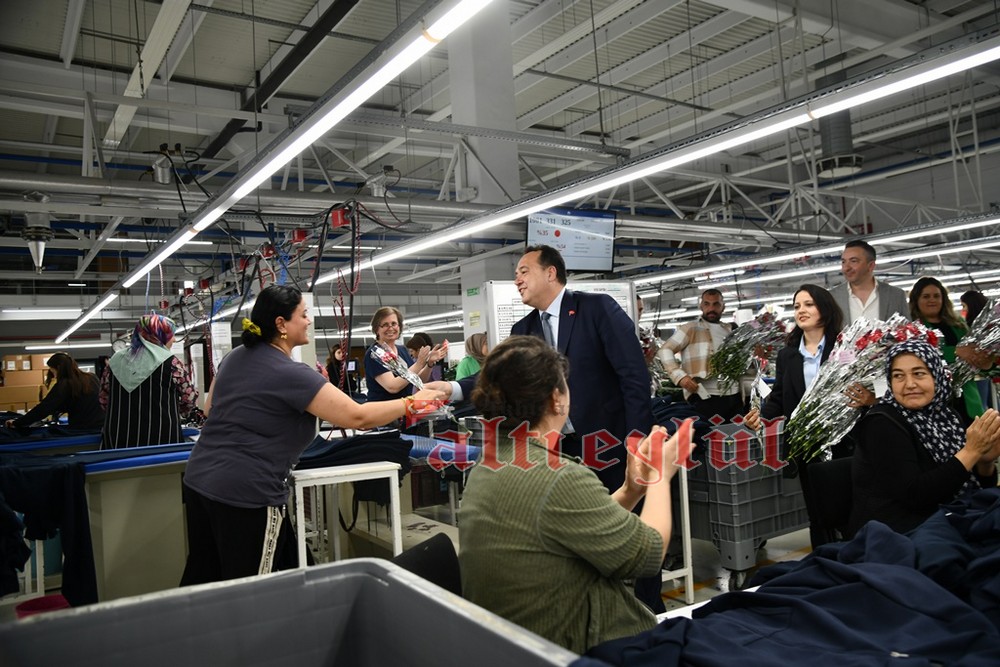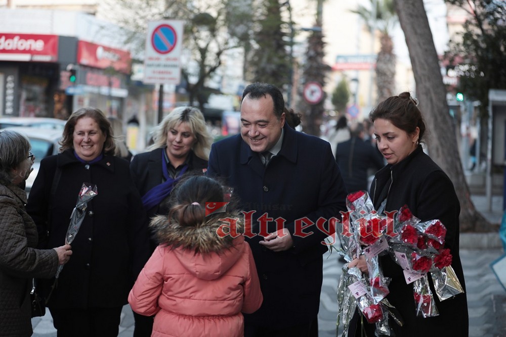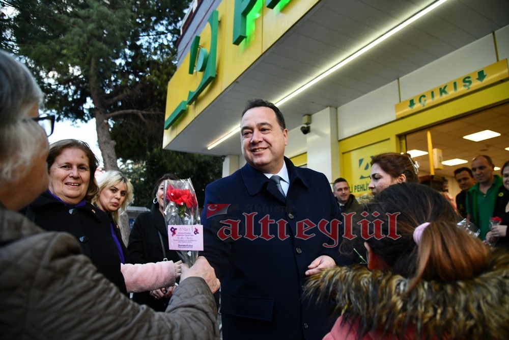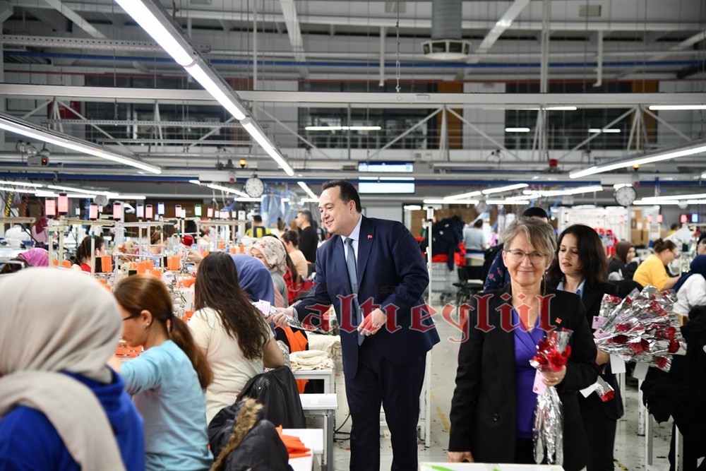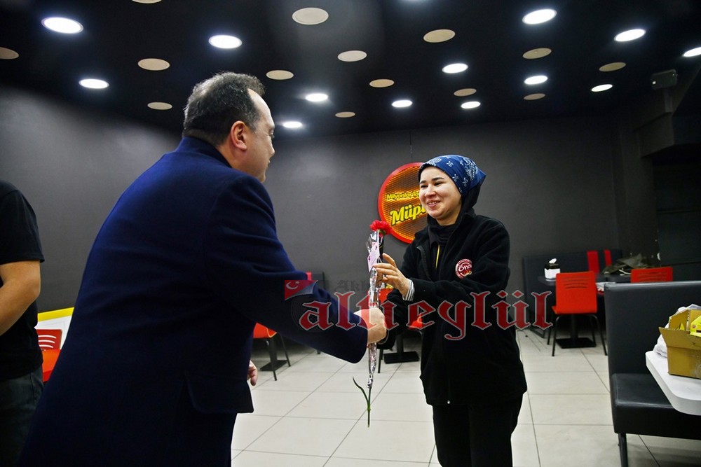Akhisar Belediye Başkanı Besim Dutlulu, 8 Mart Dünya Emekçi Kadınlar Günü’nde ilçedeki fabrikalarda çalışan, esnaflık yapan kadınları ziyaret ederek karanfil hediye etti.
