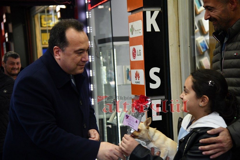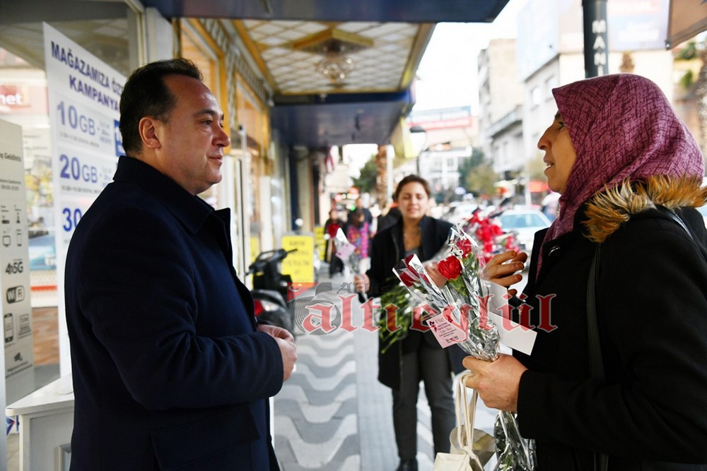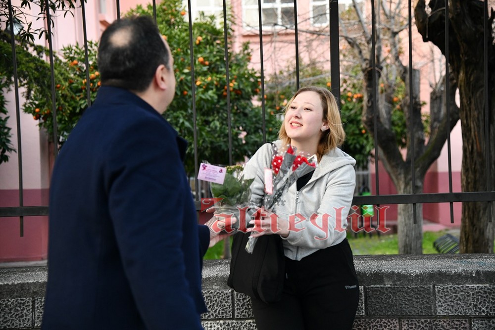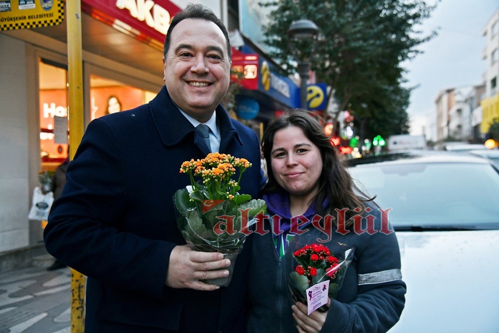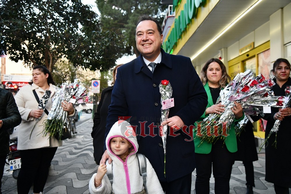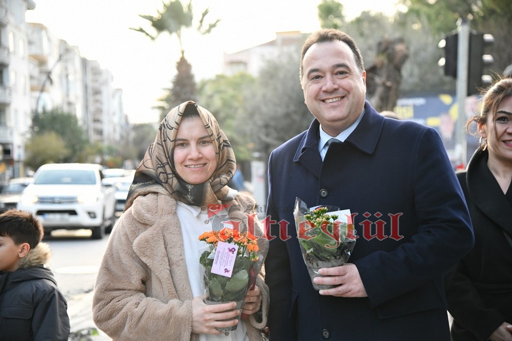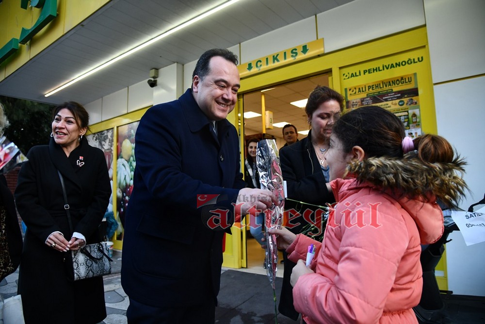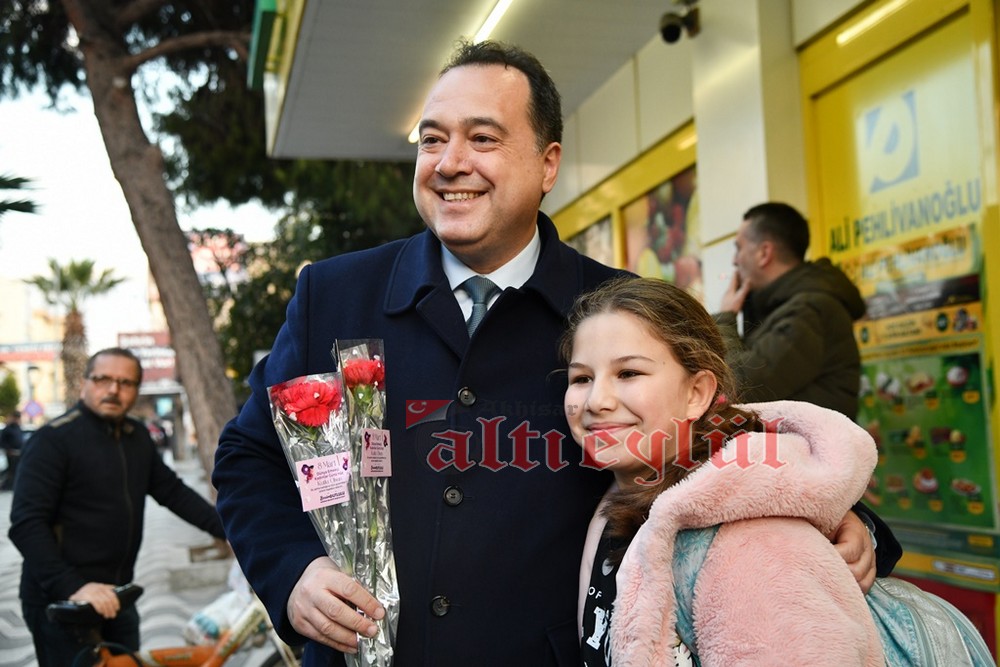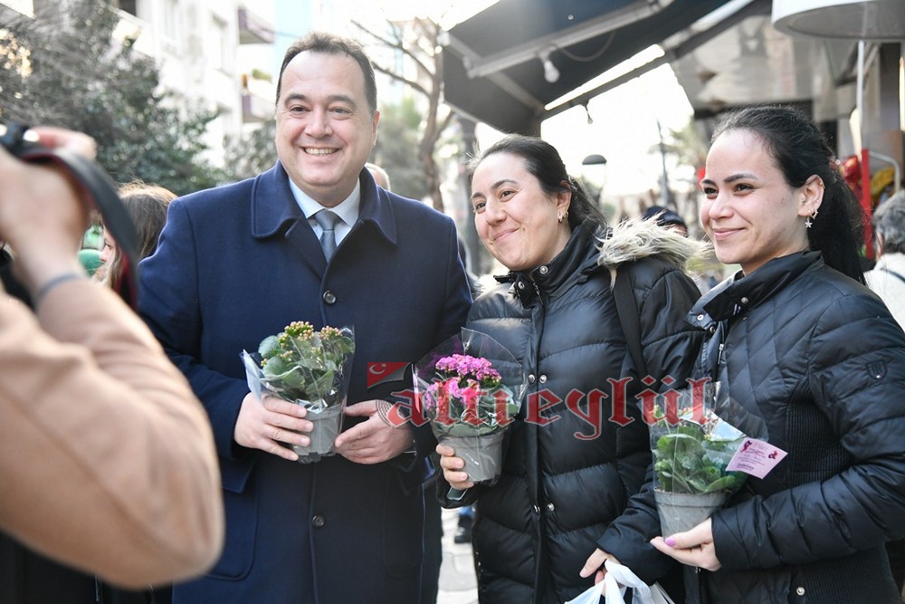 Akhisar Belediye Başkanı Besim Dutlulu, 8 Mart Dünya Emekçi Kadınlar Günü’nde ilçedeki fabrikalarda çalışan, esnaflık yapan kadınları ziyaret ederek karanfil hediye etti.