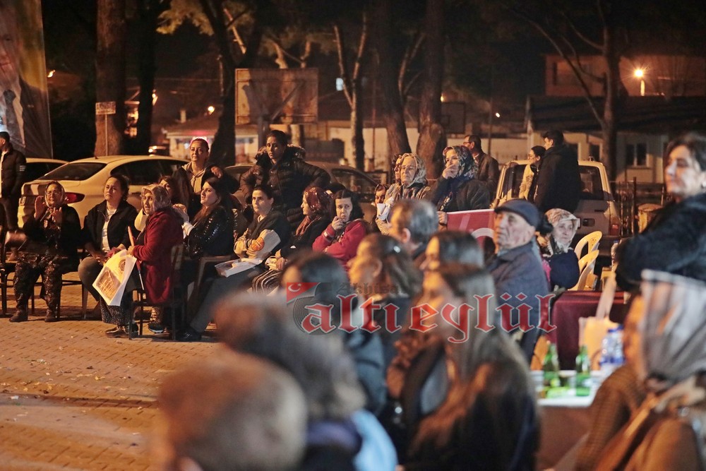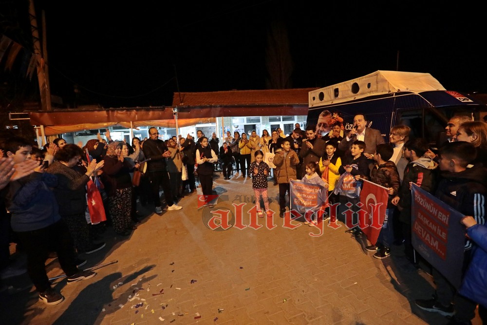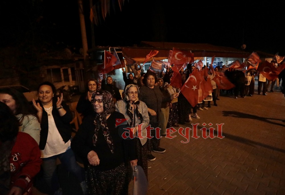 Mahalle sakinleri tarafından havai fişekler ve meşaleler ile coşkulu şekilde karşılanan Başkan Dutlulu’ya baba ocağı olan köyü Sazoba’da adeta sevgi seli vardı.