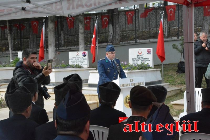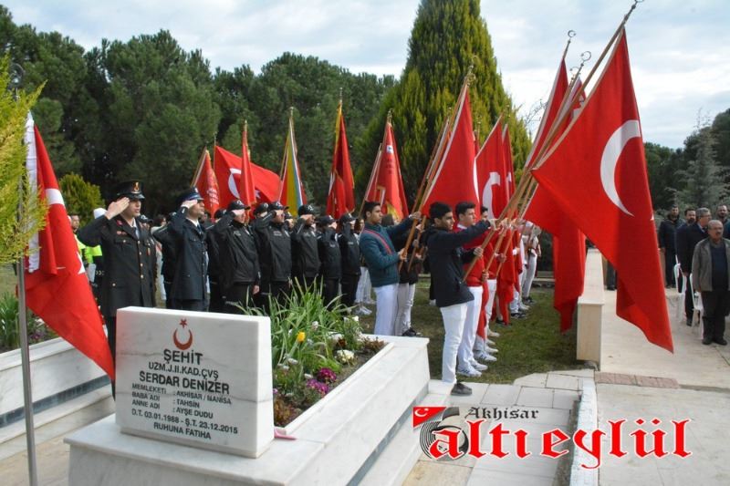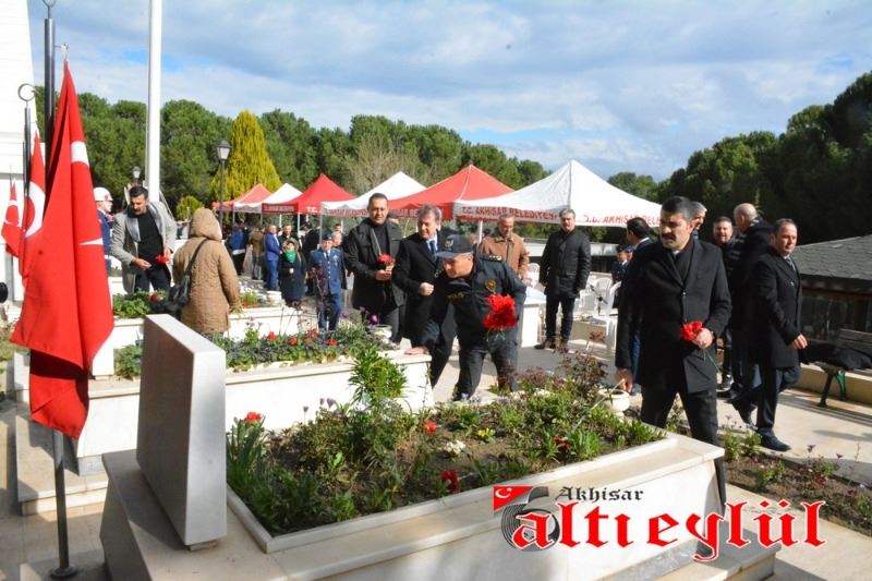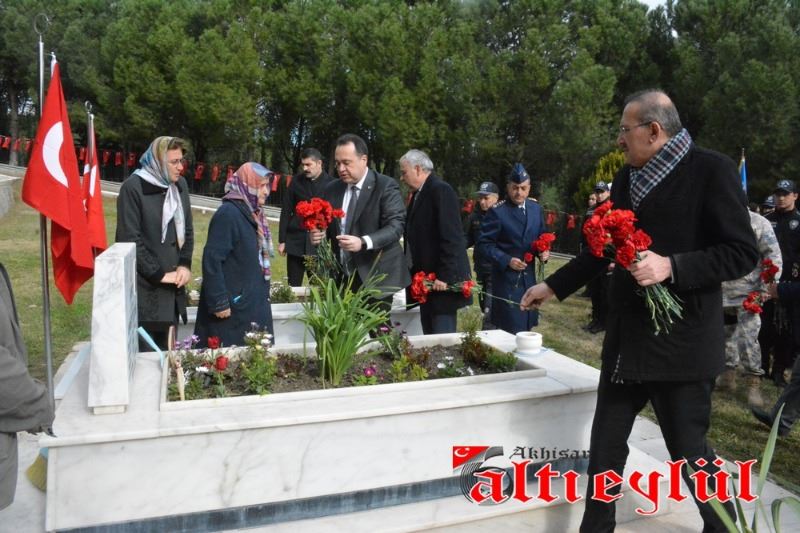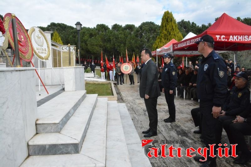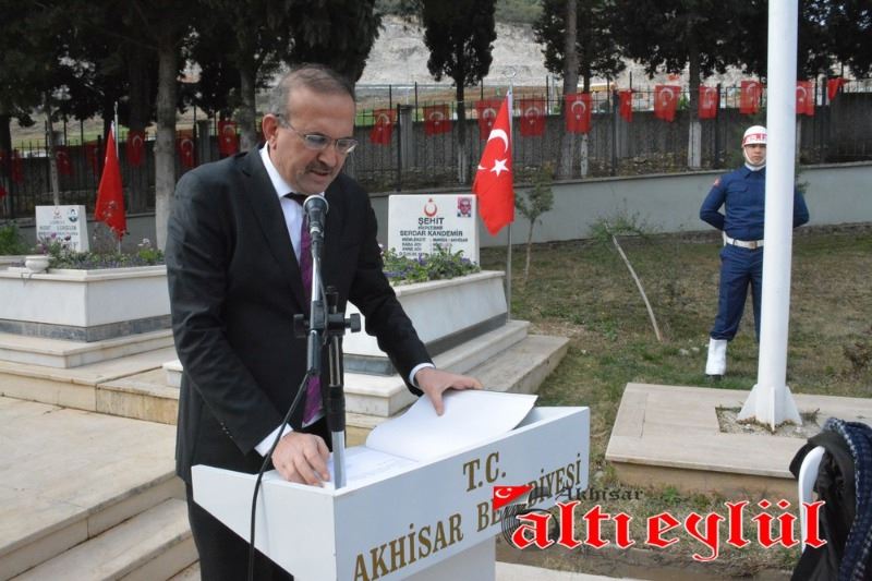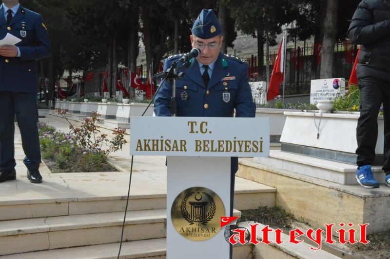 “18 Mart Çanakkale Zaferi ve Şehitleri Anma Günü” dolayısıyla Akhisar Kaymakamlığı öncülüğünde “18 Mart Şehitler Günü” programı yapıldı. Tören, Yeni Mezarlıktaki Akhisar Şehitliği’nde saat 10.00’da Kaymakamlık, Garnizon Komutanlığı, Belediye Başkanlığı, Türkiye Harp Malulü Gaziler, Şehit Dul ve Yetimler Derneği Akhisar temsilciliğinin çelenk sunmasıyla başladı.