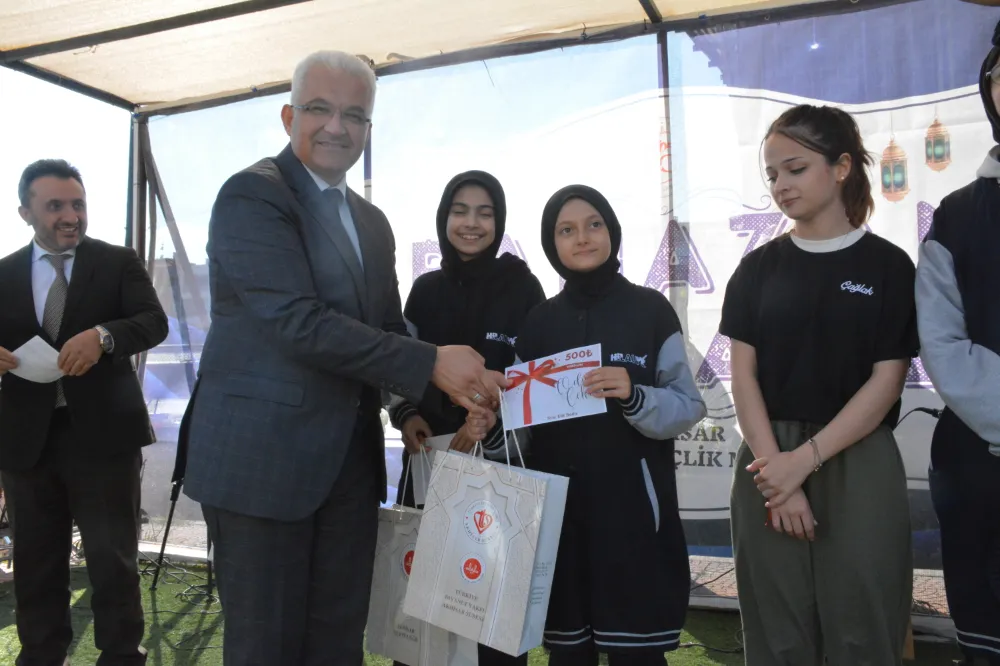 Konuşmaların ardından resim ve ezbere şiir okuma yarışmasında dereceye giren öğrencilere ödülleri takdim edildi.
