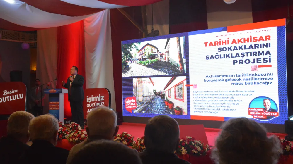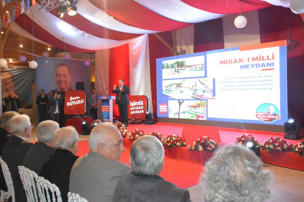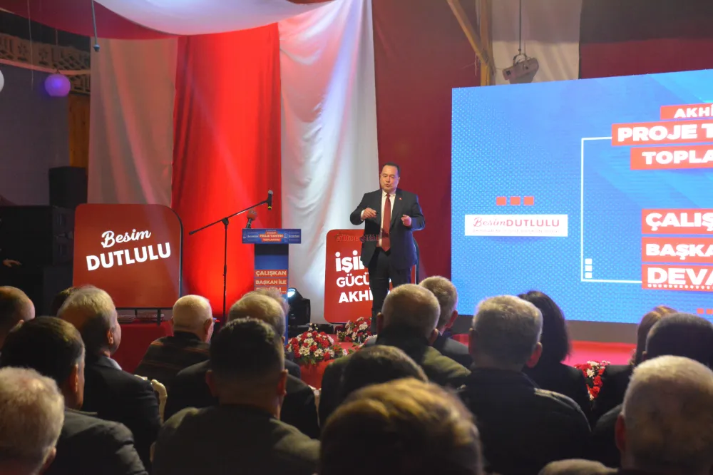 Meclis Üyelerinin tanıtımının ardından sahne CHP Akhisar Belediye Başkan Adayı Besim Dutlulu’ya bırakıldı. Dutlulu seçilmesi halinde 2024-2029 belediye başkanlığı döneminde hayata geçirmek istediği projeleri katılımcılarla paylaştı. Tanıtım sonrası yaptığı konuşmada da Manisa Büyükşehir Belediye Başkan Adayı Ferdi Zeyrek’e de destek talebinde bulunan Dutlulu, büyükşehir ve Akhisar’da CHP’nin kazanması halinde Akhisar’a yapılması planlanan yatırımların hız kazanacağını söyledi.