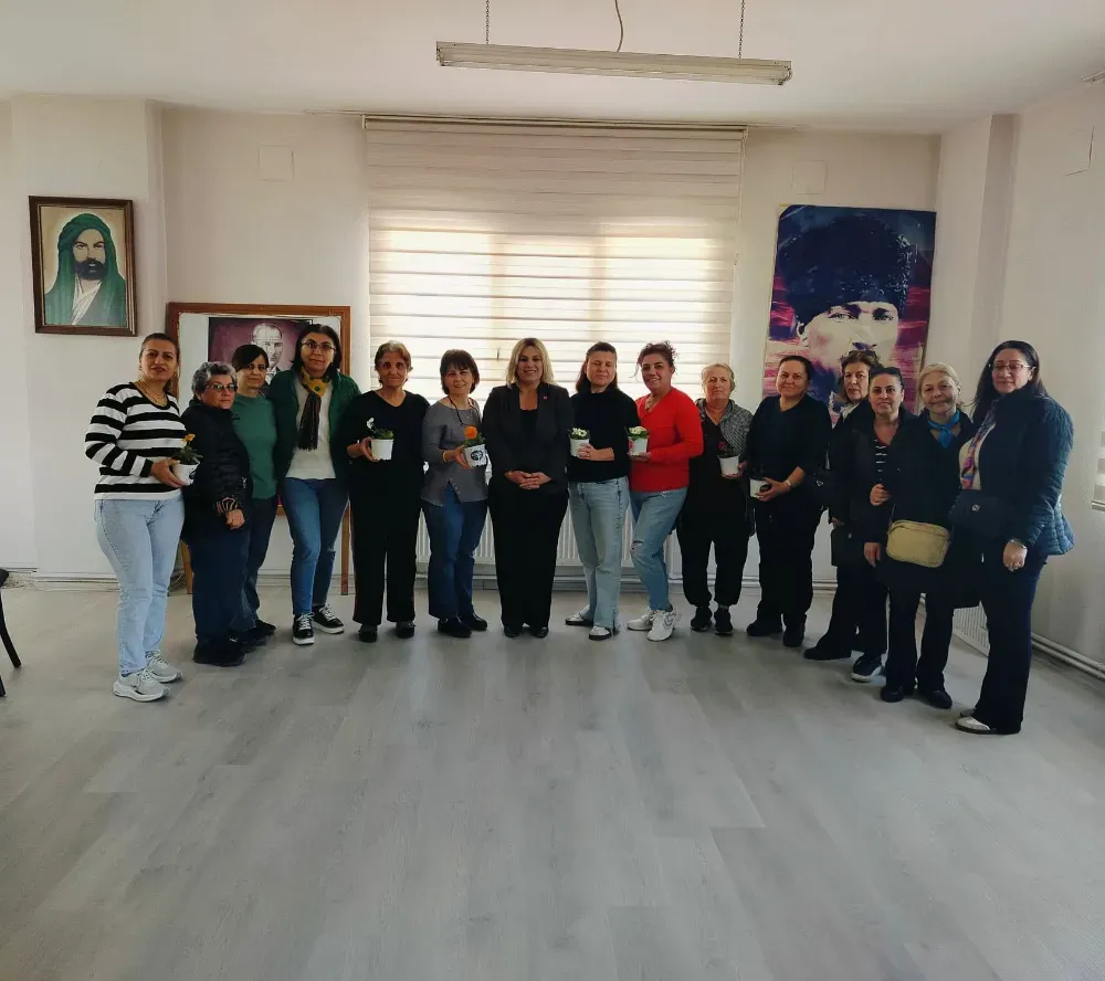 Program kapsamında ilk ziyaret Akhisar Alevi Kültür Derneği’ne yapıldı. Dernek bünyesinde faaliyet gösteren kadınlar ve eğitim alan kursiyerlerle buluşan CHP Akhisar Kadın Kolları heyeti, 8 Mart dolayısıyla kadınların gününü kutladı. Ziyarette kadınlara çiçek takdim edilirken samimi sohbetler de gerçekleştirildi.