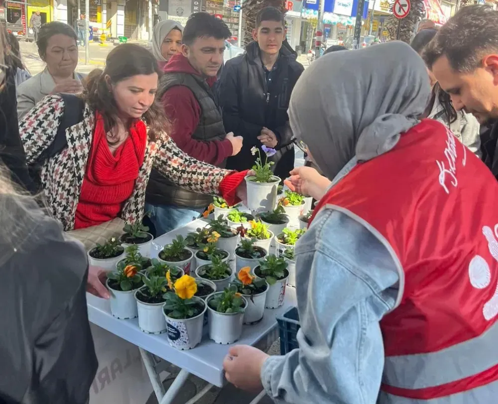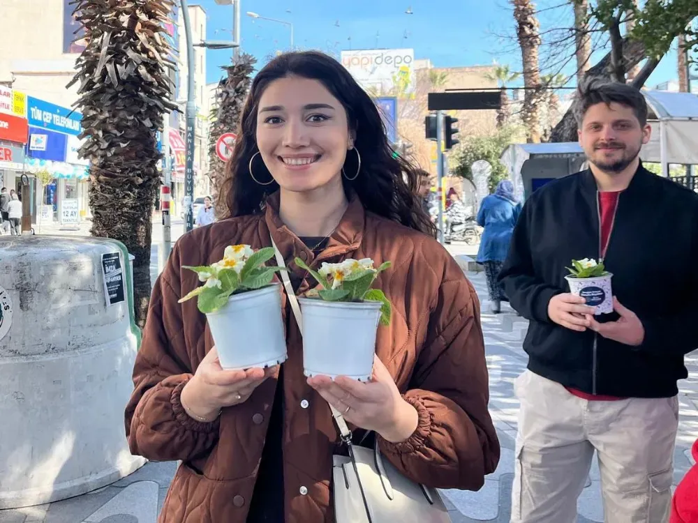 Gün boyunca şehir merkezinde vatandaşlarla bir araya gelen gençler, kadınlara çiçek vererek 8 Mart’ı kutladı.