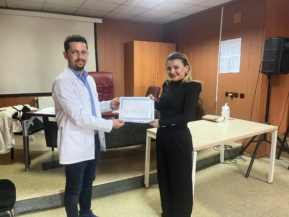 Akhisar Mustafa Kirazoğlu Devlet Hastanesi’nde düzenlenen Ameliyathane Hemşireliği Sertifikalı Eğitim Programı, başarıyla tamamlandı. Manisa’nın çeşitli ilçelerinden gelen hemşirelerin katılımıyla gerçekleştirilen program, hastanede büyük bir özveri ve profesyonellikle yürütüldü. Eğitim sürecinde bilgi ve deneyimlerini paylaşan değerli eğitimciler Zeynep Demirbaş, Nilüfer Görücü, Sema Aladağ, Gülşen Gözlet ve Esma Durgut, idareciler tarafından takdim edilen teşekkür belgeleriyle onurlandırıldı. Program sonunda, tüm katılımcı hemşirelerin sertifikaları; Başhekim Yardımcıları Uzm. Dr. İbrahim Gürcan ve Uzm. Dr. Ahmet Enes Çelik, Sağlık Bakım Hizmetleri Müdürü Makbule Er ile Müdür Yardımcısı Koray Ok tarafından takdim edildi. Törende bir konuşma yapan Başhekim Yardımcısı Uzm. Dr. İbrahim Gürcan, eğitimin başladığı günden itibaren tüm ekibin titizlikle çalıştığını belirterek, “En iyi hizmeti sunmak için büyük emek verildi. Eğitimimize katılan tüm hemşirelerimize meslek hayatlarında başarılar dilerim” ifadelerini kullandı. Program, Akhisar Devlet Hastanesi’nin sağlık personelinin mesleki gelişimine verdiği önemi bir kez daha ortaya koydu.