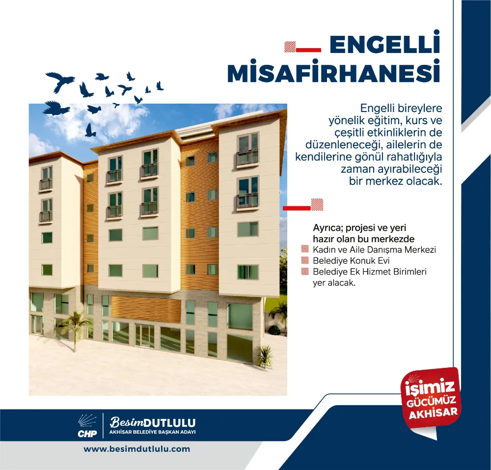 Projesi ve yeri hazır olan bu merkez içerisinde ayrıca Akhisar’ın ikinci Kadın ve Aile Danışma Merkezi’nin yanı sıra belediye konuk evi ile belediye ek hizmet birimleri yer alacak. Bu merkez toplumdaki dezavantajlı gruplara fayda sağlarken, kentimize de değer katacak” dedi.