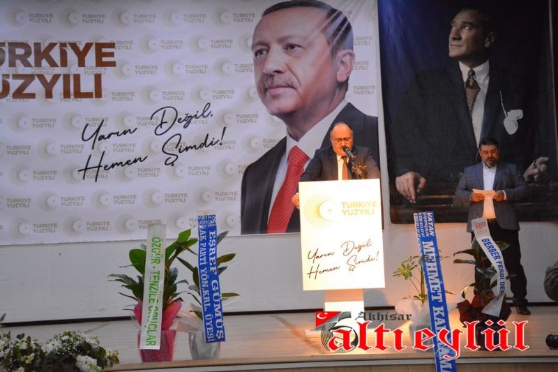 Böyle önemli bir günde AK Davamızı ve bizleri yalnız bırakmayan Akhisarlı hemşerilerimize, Büyükşehir Belediye ve Belediye Meclis Üyelerimize; AK Parti Ana Kademe, Gençlik Kolları, Kadın Kolları, Mahalle Temsilcilerine; Cumhur İttifakının kıymetli temsilcilerine; mahalle muhtarlarımıza; sivil toplum örgütünün kıymetli temsilcilerine; misafirlerimize; basınımıza teşekkür ve şükranlarımı sunuyorum. Sağ olun, var olun. Rabbim hepinizden razı olsun.” dedi.