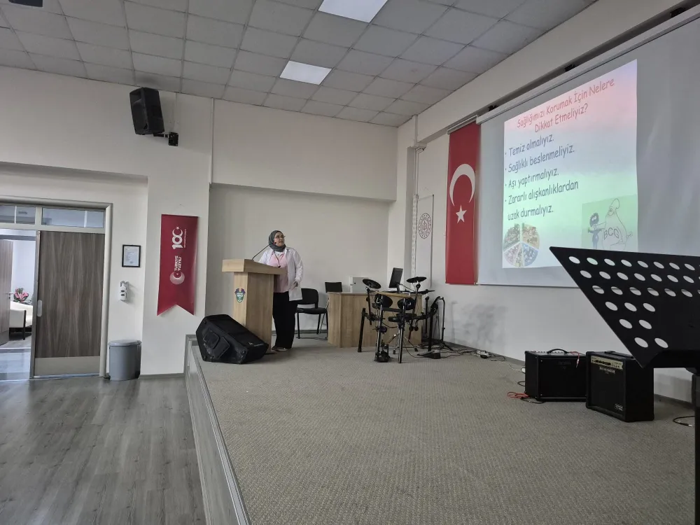 Öğrenciler, sunumları büyük bir ilgiyle izlerken, program soru-cevap bölümüyle sona erdi. Etkinlik, öğrencilerin sağlık bilinci kazanması ve günlük yaşamda sağlıklı alışkanlıklar edinmesi açısından önemli bir deneyim oldu.