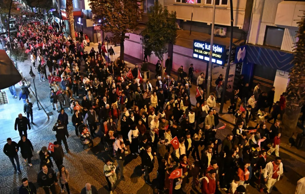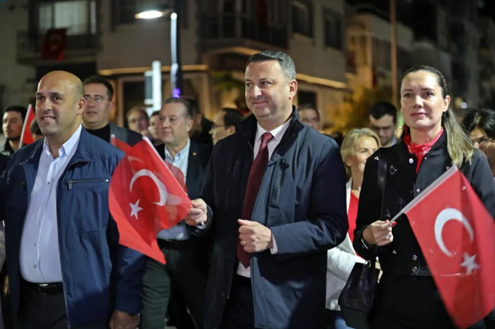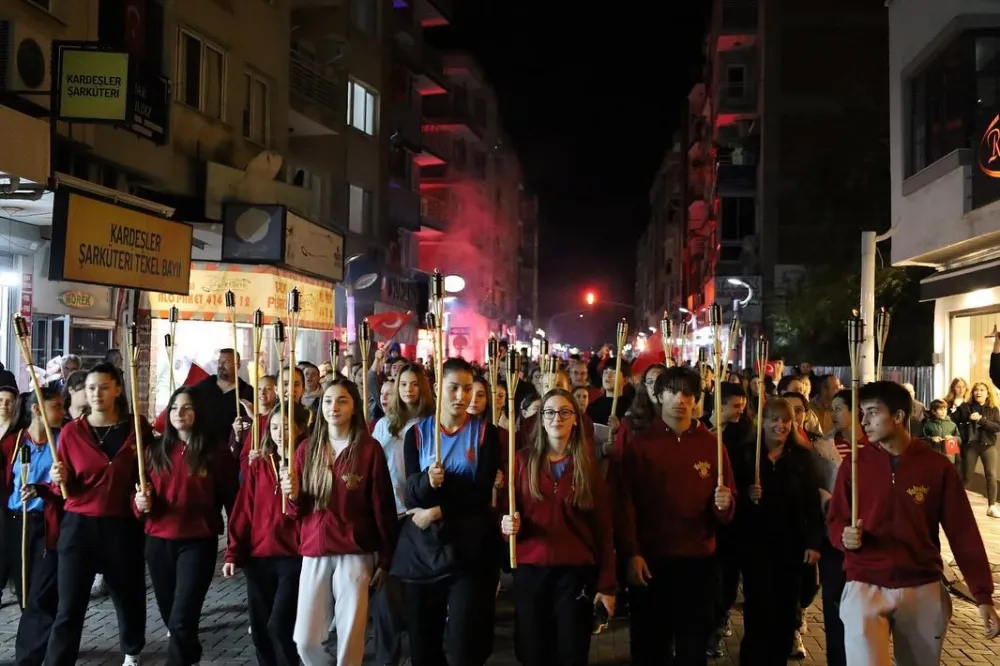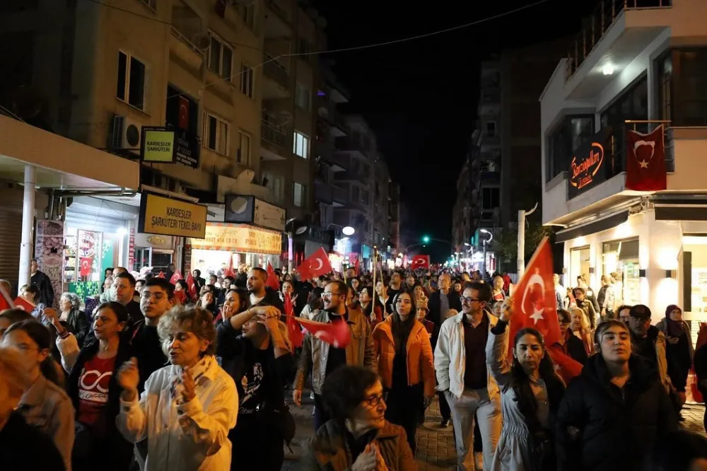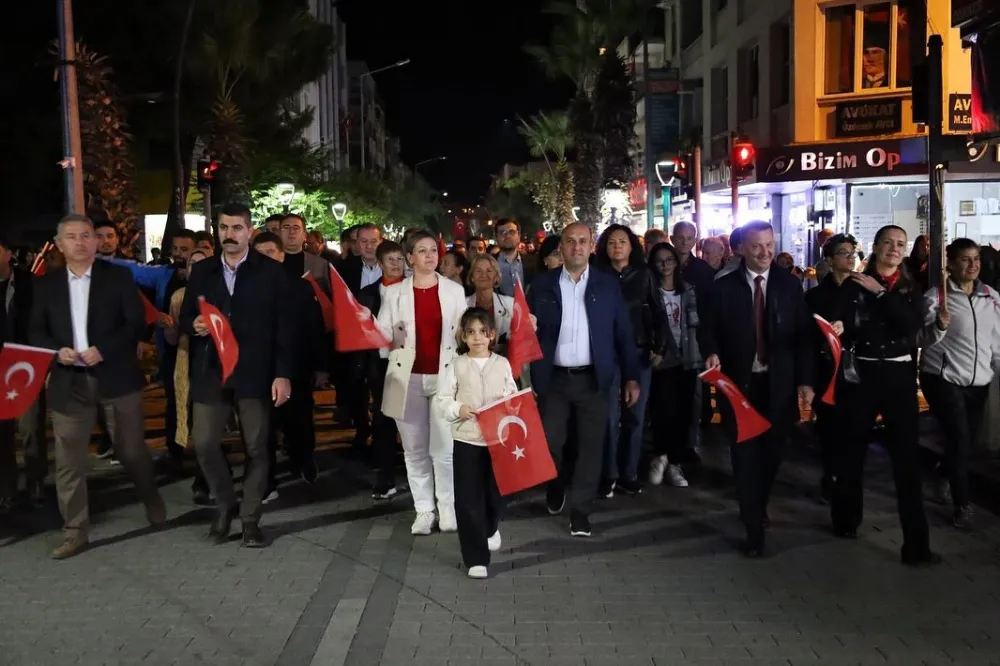 Saat 20.00’de ise Akhisar Kaymakamı Mustafa Can, Akhisar Belediye Başkanı Ekrem Kayserili, Cumhuriyet Başsavcısı Sebahattin Erkaya ve çok sayıda vatandaş, okul bandosunun öncülüğünde fener alayında bir araya geldi. Ellerinde Türk bayrakları ve Atatürk posterleriyle yürüyen kalabalık, Misak-ı Milli Okulu bahçesinden başlayarak Şehit Teğmen Tahir Ün Caddesi ve Birinci Nakliye Caddesi güzergâhından Milli Egemenlik Meydanı’na ulaştı.