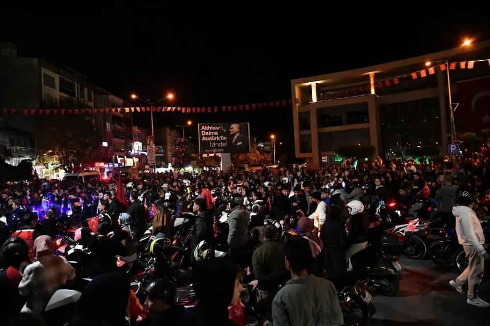 Kutlamalar, saat 19.45’te Akhisarlı motosiklet tutkunlarının Misak-ı Milli İlkokulu önünden başlattığı kortejle başladı. Türk bayraklarıyla süsledikleri motosikletleriyle şehir turu atan motorcular, Akhisar sokaklarını kırmızı-beyaz renklere boyadı. Vatandaşlar, bu renkli korteje alkışlarıyla eşlik etti.