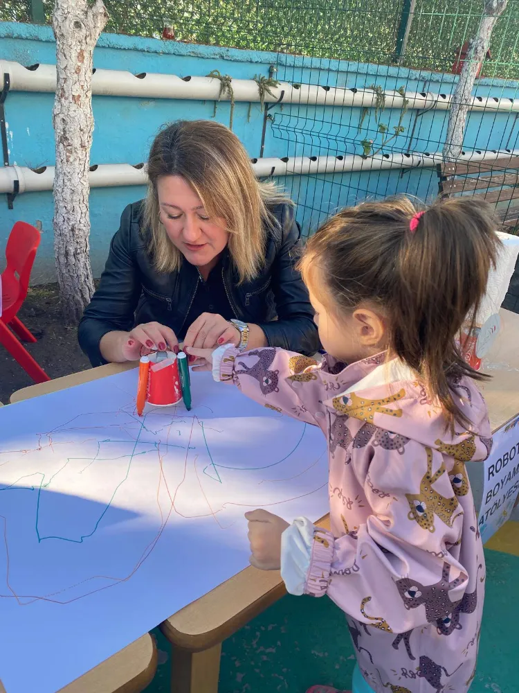 Etkinlik kapsamında öğretmenler, öğrenciler ve velilerle bir araya gelen Yağmurlu, uygulamalı etkinlikler ve grup çalışmalarıyla devam eden atölye sürecini yakından takip etti.