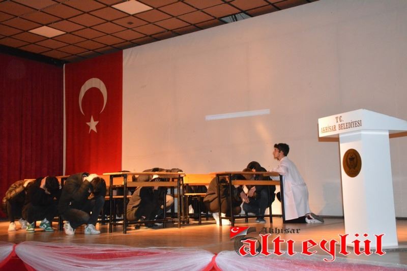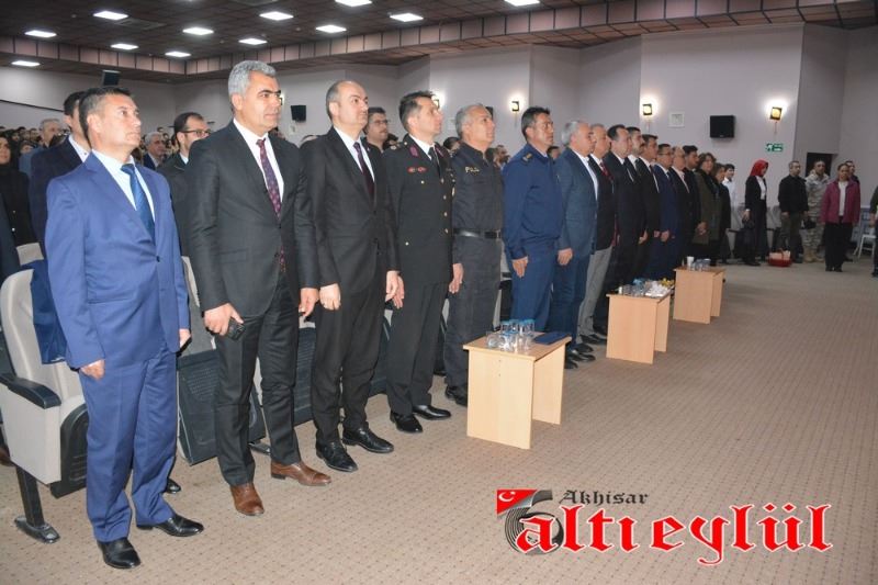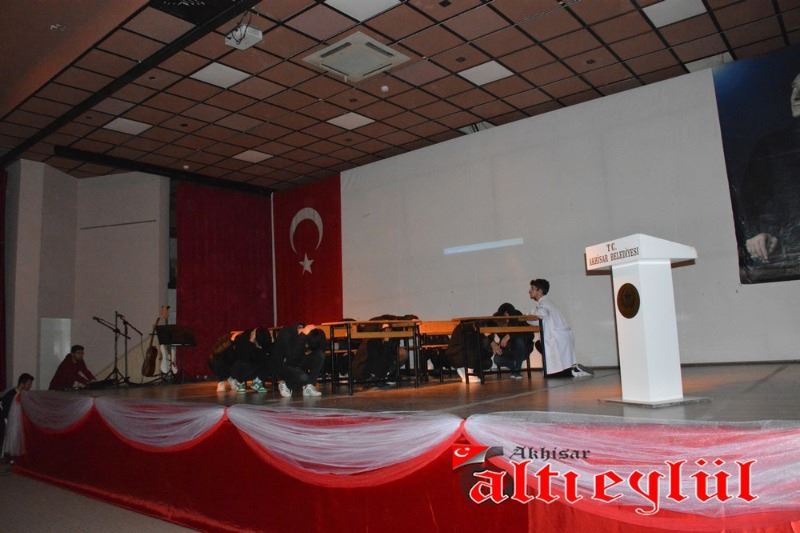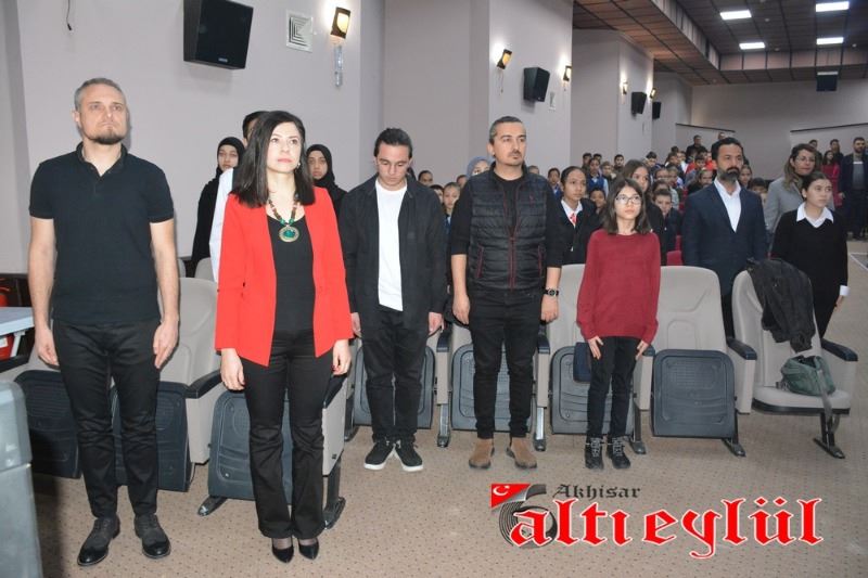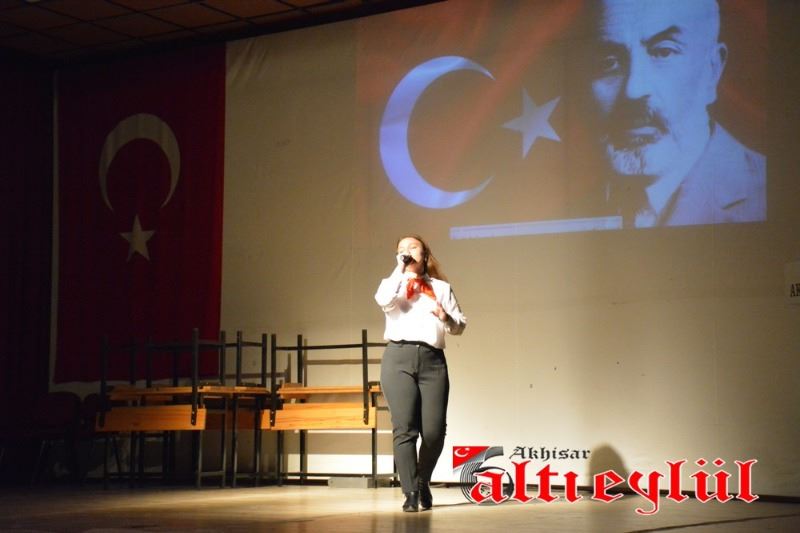 12 Mart İstiklal Marşı’nın Kabulü ve Mehmet Akif Ersoy’u Anma programı Bülent Ciğeroğlu Kültür Merkezi’nde saat 10.00’da saygı duruşunda bulunup İstiklal Marşı’nın okunması ile başladı. Akhisar Namık Oğul Anadolu Lisesi’nin hazırladığı ve sunduğu programda günün anlam ve önemini belirten konuşmayı Namık Oğul Anadolu Lisesi Müdür Yardımcısı Yasin Gürek yaptı. Program, “Mehmet Akif Ersoy ve İstiklal” adlı video gösterimi ve Sıla Şenyüz isimli öğrencinin Bülbül isimli şiiri okumasının ardından, “İstiklal Ruhu” adlı tiyatro gösterimi ve öğretmenler tarafından düzenlenen müzik dinletisi ile devam etti.
