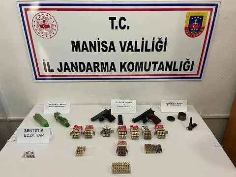 Akhisar İlçe Jandarma Komutanlığı ekiplerince gerçekleştirilen aramalarda çok sayıda ruhsatsız silah ve kaçak ürün ele geçirildi.