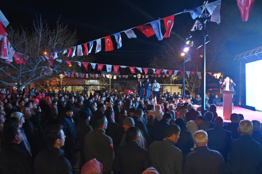 Kayalıoğlu halkına seslenen Akhisar Belediye Başkanı Besim Dutlulu, yaptığı konuşmasında 5 yılda Akhisar’da ve Kayalıoğlu Mahallesi’nde gerçekleştirdiği hizmetlerden bahsetti. Yeni meydan çalışması, sıcak ve soğuk asfalt çalışmaları, sosyal tesis, aile çay bahçesi, parke taş çalışmaları, arazi yolu çalışmaları, sosyal ve kültürel çalışmalar gibi birçok alanda çok güzel hizmetler yaptıklarını söyleyen Başkan Dutlulu, “Yıllardır hizmetten mahrum kalan Kayalıoğlu Mahallesi, hak ettiği hizmetlere bizim dönemimizde kavuştu. Ama yetmez; ikinci dönemimizde hem Akhisar merkezinde hem de kırsalda daha çok çalışacağız. Halkımızın destekleri bizimle olduğu sürece bu şehre daha çok hizmet edeceğiz. Bu akşam bizleri coşkuyla karşılayan Kayalıoğlu halkımızın 31 Mart seçimlerinde sandıkları patlatacağına ve hizmete, çalışkanlığa oy vereceklerine yürekten inanıyorum. Misafirperverlikleri ve gösterdikleri ilgi için Kayalıoğlu halkımıza çok teşekkür ediyorum” dedi.