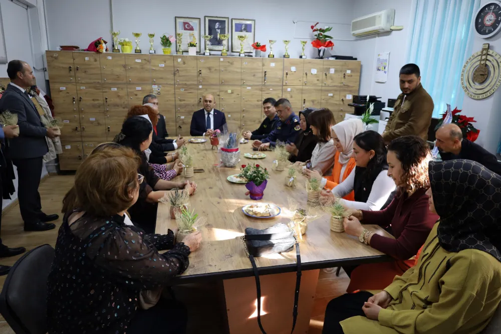Kaymakam Can, okulda görev yapan öğretmenlerle bir araya gelerek öğretmenlerin 24 Kasım Öğretmenler Günü’nü kutladı. Ziyarette öğretmenlerle sohbet eden Kaymakam Can, eğitimin toplum için taşıdığı öneme vurgu yaparak tüm öğretmenlere fedakâr çalışmalarından dolayı teşekkür etti.