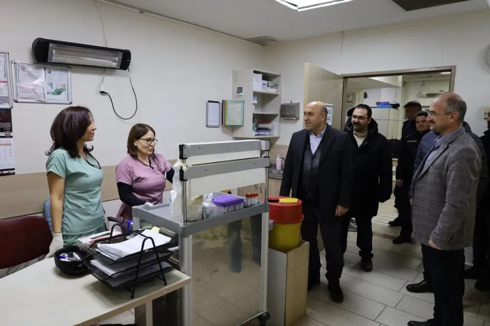 Kaymakam Can, itfaiye, huzurevi, rehabilitasyon merkezi, jandarma, emniyet, Devlet Hastanesi ve 112 Acil Sağlık Hizmetleri birimlerini ziyaret ederek, görev başındaki personelin yeni yılını tebrik etti.