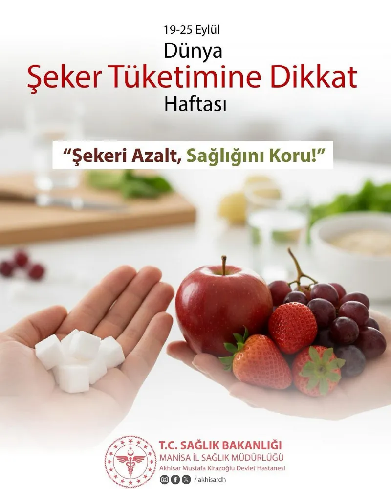 Açıklamada, aşırı şeker tüketiminin sağlık üzerindeki olumsuz etkilerine dikkat çekilerek “Şekeri Azalt, Sağlığını Koru!” mesajı verildi. Hastane yetkilileri, özellikle işlenmiş gıdalar ve içecekler aracılığıyla vücuda alınan fazla şekerin; obezite, diyabet, kalp hastalıkları ve diş sağlığı sorunları gibi pek çok ciddi sağlık problemine yol açabileceğini belirtti. Sağlıklı bir yaşam için vatandaşlara şu önerilerde bulunuldu: Gazlı ve şekerli içecekler yerine su veya şekersiz içecekleri tercih edin. İşlenmiş gıdalardaki gizli şeker oranlarına dikkat edin. Tatlı tüketimini özel günlerle sınırlandırın. Şeker ihtiyacınızı meyvelerden gelen doğal şekerle karşılamaya özen gösterin. Yapılan açıklamanın sonunda ise “Unutmayın, şeker tadında ama sağlıklı bir hayat sizin elinizde!” denilerek toplumun bilinçli tüketim alışkanlıkları geliştirmesi gerektiği vurgulandı. Akhisar Mustafa Kirazoğlu Devlet Hastanesi, sağlıklı yaşam konusundaki farkındalık çalışmalarına yıl boyunca devam edeceğini bildirdi.