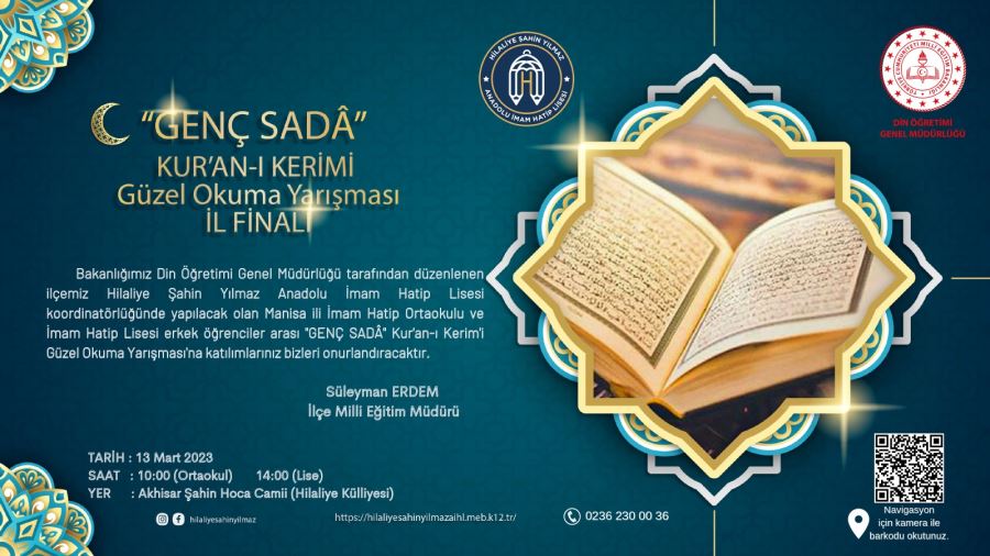 Milli Eğitim Bakanlığı Din Öğretimi Genel Müdürlüğü tarafından her yıl düzenlenen İmam Hatip Ortaokulları ve İmam Hatip Liseleri arası mesleki yarışmalardan "GENÇ SADÂ" Kur'an-ı Kerim'i Güzel Okuma Yarışması Manisa il finali ilçemizde yapılacak. Bu yıl "GENÇ SADÂ" Kur'an-ı Kerim'i Güzel Okuma Yarışması'na ilçemiz Hilaliye Şahin Yılmaz Anadolu İmam Hatip Lisesi ev sahipliğinde, Akhisar Şahin Hoca Camii’nde yapılacak.