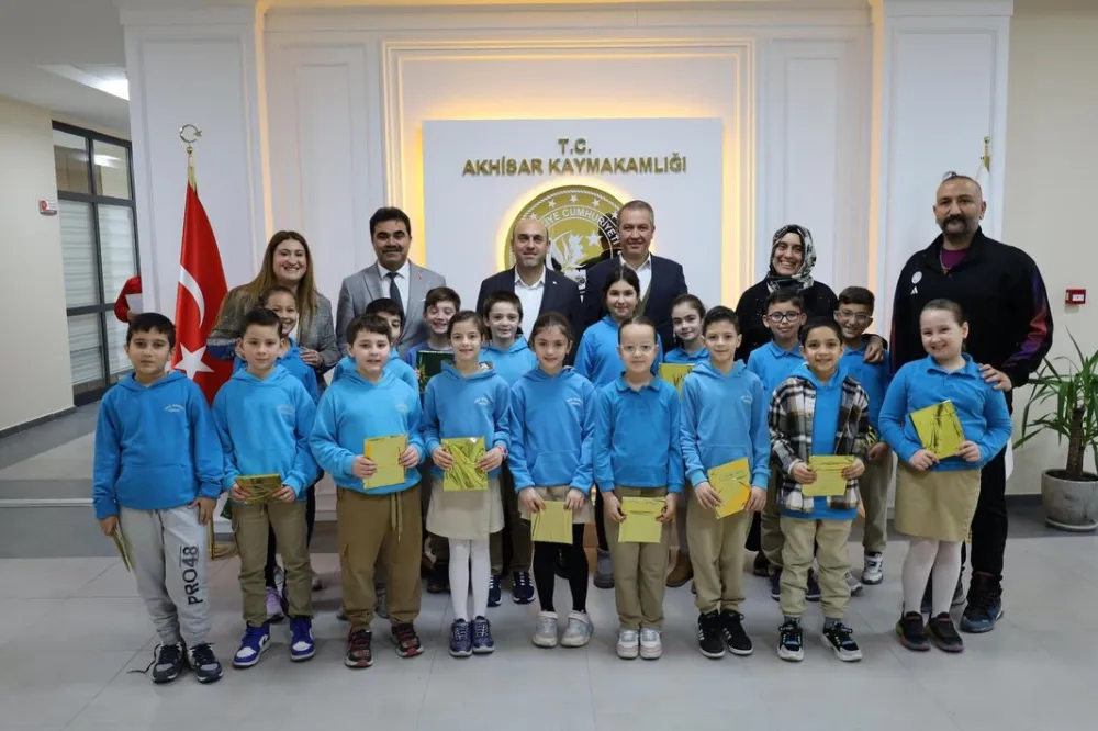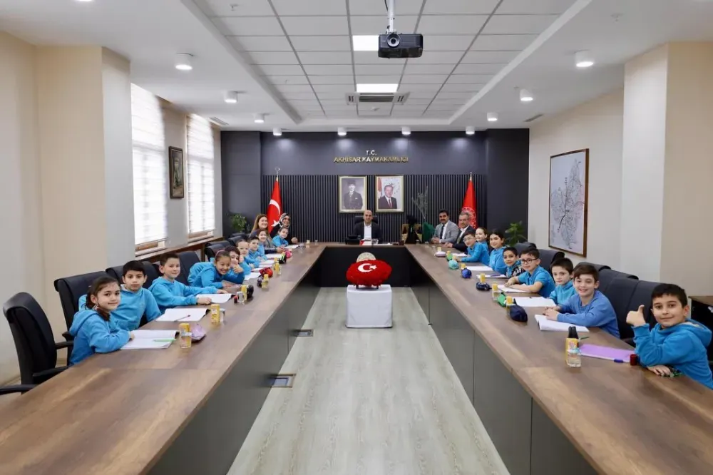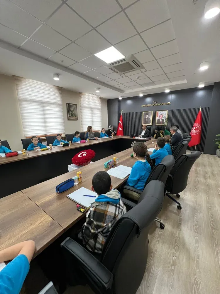 Halil Mandacı İlkokulu 3. sınıf öğrencileri, öğretmenleri eşliğinde Akhisar Kaymakamı Mustafa Can’ı makamında ziyaret etti.