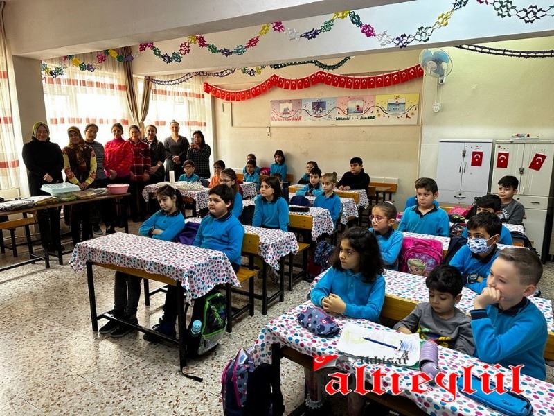 Emekli Albay Gültekin Aşer daha sonra 3-F sınıfındaki 23 öğrenciye teker teker Teşekkür Belgesi vererek kendilerine Türk Silahlı Kuvvetlerini Güçlendirme Vakfı tanıtım malzemelerinden oluşan çantaları hediye etti ve her bir öğrenci ile teker teker fotoğraf çektirdi.