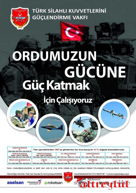 Kuruluşunda sınırlı bir bütçeyle yola koyulan TSK Güçlendirme Vakfı, çalışmalarında en büyük desteği büyük Türk Milletinden almıştır. Vakıf, milletimizin dişinden tırnağından artırarak gönülden verdiği bağışları en verimli şekilde değerlendirmek üzere çalışmalarını büyük bir azim ve kararlılıkla sürdürmektedir.