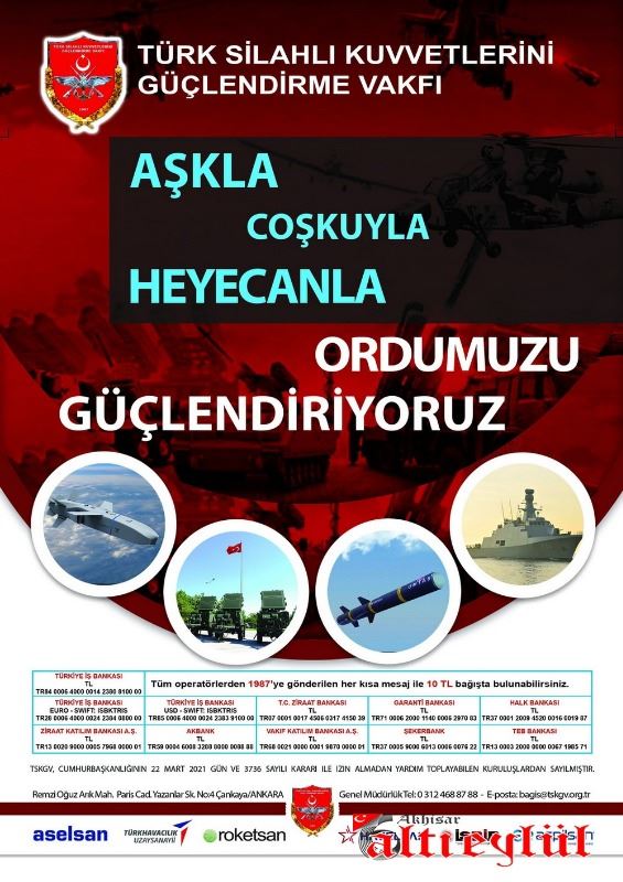 Kurulduğu günden itibaren başta bağışçıları olmak üzere vefakâr Türk halkının desteğini hep yanında hisseden TSK Güçlendirme Vakfı, dün olduğu gibi bugün de milleti ile gönül bağını sürdürmeye 35 yıldır devam ediyor.