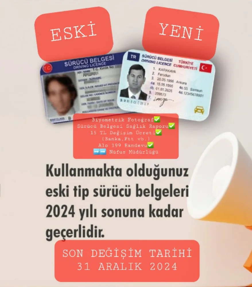 Eski tip sürücü belgelerinin değiştirilmesi için belirlenen son tarih 31 Aralık 2024 olarak açıklanmıştı. Akhisar İlçe Nüfus Müdürü Yunus Soyalan’da vatandaşlara seslenerek yılsonu yoğunluğuna kalmadan ehliyetlerini yenilemeleri çağrısında bulundu.