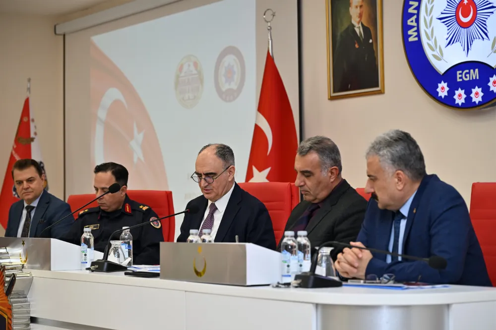 Manisa Valisi Vahdettin Özkan başkanlığında gerçekleştirilen toplantıya; İl Jandarma Komutanı Tuğgeneral İlhan Şen, Vali Yardımcıları Mustafa Harputlu ve Erhan Günay, İl Emniyet Müdürü Fahri Aktaş, İl Millî Eğitim Müdürü Mehmet Uğurelli ile ilgili kurum ve kuruluşların temsilcileri katıldı.