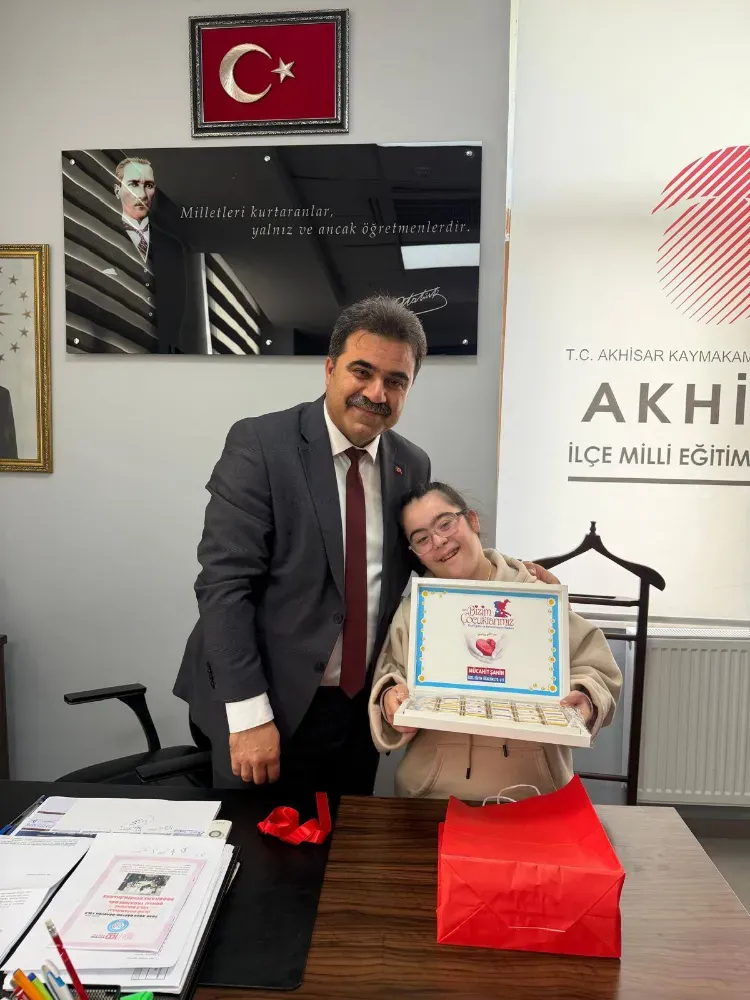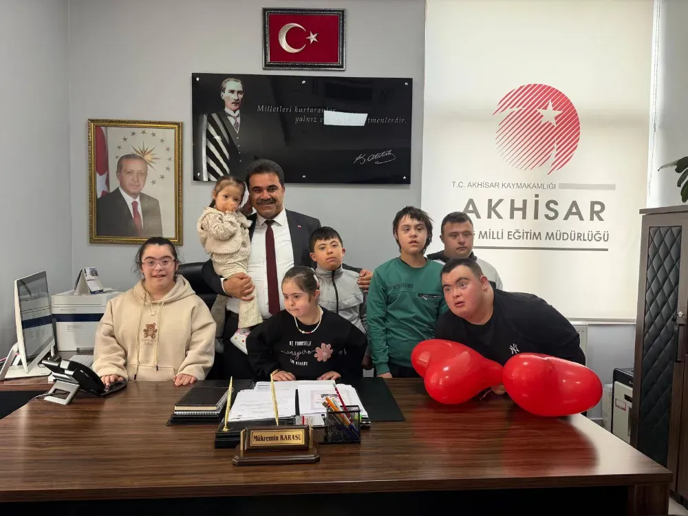 Akhisar İlçe Milli Eğitim Müdürü Mükremin Karasu’yu makamında ziyaret eden öğrenciler, bu özel günün önemini paylaştı. Müdür Karasu, ziyaretten duyduğu memnuniyeti dile getirerek, 21 Mart tarihinin down sendromlu bireylerin ihtiyaçlarını görünür kılmak ve onların toplum için ne kadar değerli olduğunu göstermek açısından önemli bir fırsat sunduğunu vurguladı.