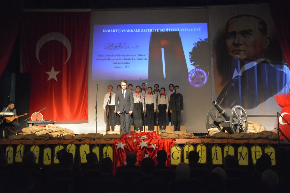 18 Mart günü saat 11.20’de Akhisar Park İçi eski Sinema Salonu’nda ŞİAL öğrencileri ve öğretmenleri tarafından Çanakkale Zaferi ve Şehitler Günü’ne yönelik program düzenlendi. Sunuculuğunu ŞİAL Türk Dili ve Edebiyatı Öğretmeni Fethi Görgülü’nün yaptığı program, Beden eğitimi öğretmeni Fatih Tunç’un komutuyla saygı duruşunda bulunulması, Müzik öğretmeni Umut Fitil’in yönetiminde İstiklal Marşı okunması ile başladı.