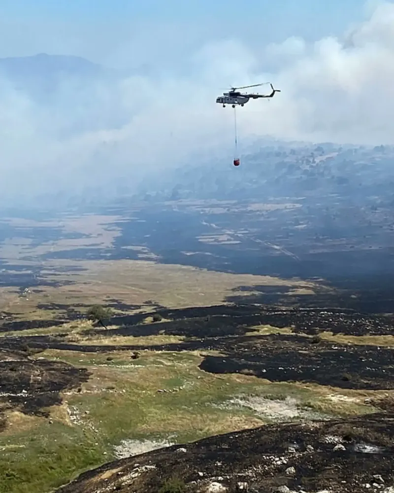 40-60 km/s bulan rüzgârın etkisi altında olan bölgede yangına müdahale edildi.